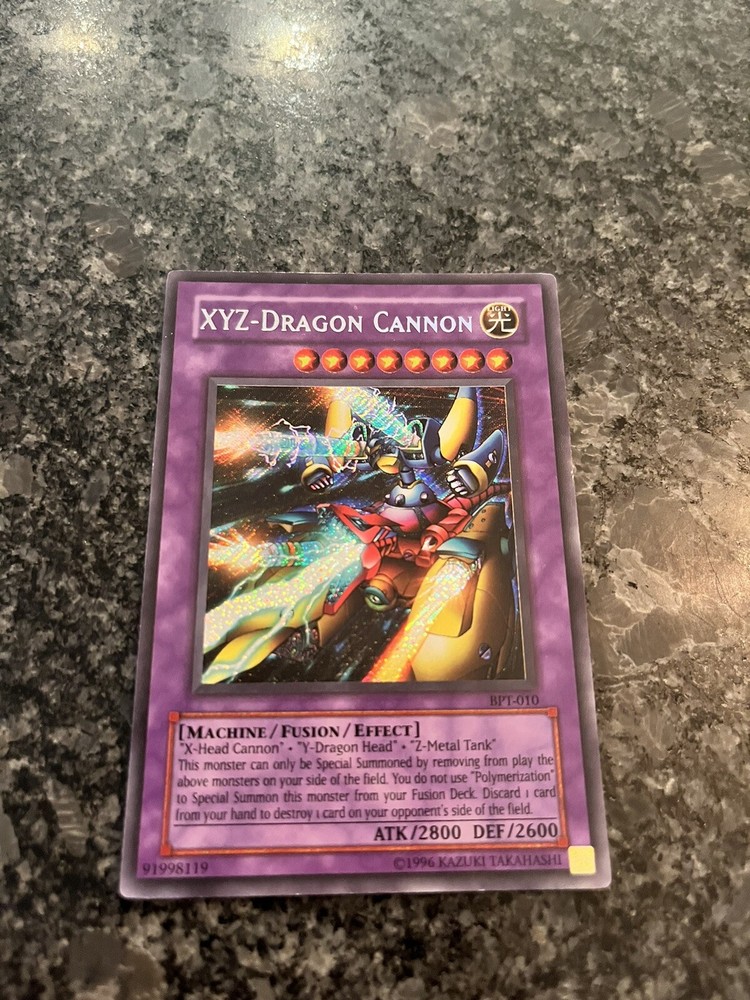 LP - Yu-Gi-Oh! TCG - XYZ-Dragon Cannon - BPT-010 - Secret Rare. Card in good condition. Slight edge wear. See photos for reference. Cards shipped in plastic card protector and cardboard Hobby Armor....