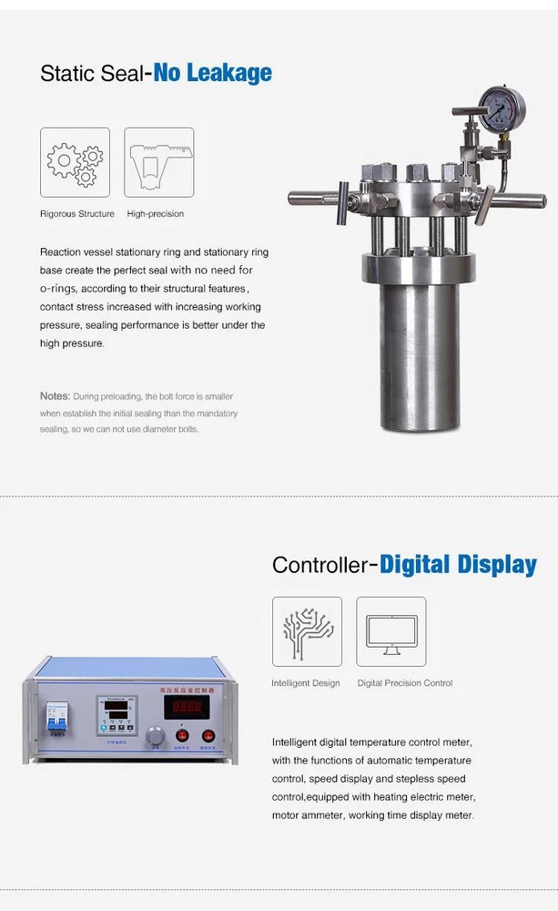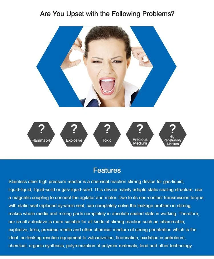 CJF series lift-type high-pressure stirring vessels are widely used in reaction vessels for gas-liquid, liquid-liquid, liquid-solid or gas-liquid-solid three-phase chemical materials. CJF series adopts static sealing structure, and the stirrer and motor drive are connected by magnetic coupling, which completely solves the leakage problem caused by dynamic sealing and stirring. Therefore, CJF series is very suitable for stirring reaction of various flammable, explosive, toxic, highly permeable and precious chemical media. It is an ideal non-leakage reactor for vulcanization, fluorination and oxidation in petroleum, chemical, organic synthesis, polymer polymerization, food processing and other fields. Lab Stainless Steel High Pressure Reactor Autoclave Vessel with PTFE Lining CJF series lift-type high-pressure stirring vessels are widely used in reaction vessels for gas-liquid, liquid-liquid, liquid-solid or gas-liquid-solid three-phase chemical materials. CJF series adopts static sealing structure, and the stirrer and motor drive are connected by magnetic coupling, which completely solves the leakage problem caused by dynamic sealing and stirring. Therefore, CJF series is very suitable for stirring reaction of various flammable, explosive, toxic, highly permeable and precious chemical media. It is an ideal non-leakage reactor for vulcanization, fluorination and oxidation in petroleum, chemical, organic synthesis, polymer polymerization, food processing and other fields. Product List: 2L high pressure reactor *1 Temperature Controller *1 2LPTFE reactor lining *1 By DHL/FedEx; Delivery within 6-9 working days; Packed in wooden case; One year warranty. Features: 1. Use bolted structure, reactor cover could be lifted, so topple discharging or bottom discharging are both available. 2. Equip with intelligent controller to collect and control the data of motor speed, reaction temperature and pressure, high precision, easy to operate and interfere resistant. 3. Use silicone oxide ceramic heating component, stirring speed is adjustable according to your needs. 4. High pressure reactor is equipped with explosion-proof valve, which is safe and reliable. Payment Delivery details Terms of sales About us Contact us Payment Payment should be completed within 4 (Four) days of auction closing. Or unpaid dispute will be filed for closing auction. We will leave a positive feedback immediately after payment is received. We appreciate a positive feedback as much as you do. If for some reason there is any issue with the purchase, please contact us prior to leaving feedback, we will be glad to work together and provide a satisfying solution. Delivery details We only ship the item to the eBay Verified address that is sent to us at the time of checkout, most shipment will be shipped within 1-5 business day. Please verify the correct shipping address in your eBay account before making your payment. Shipping time during holidays may take longer than normal. Any brokerage, customs, and duty fees associated with international shipments are the customer's responsibility and are not included in our shipping charges. If you are located outside of the continental 48 United States, please email us in advance to see if the specific item ships to your location. These orders are generally shipped within 1-5 days after payment is received. Please be patient as they are often subject to additional inspection upon delivery. Terms of sales All of our items are backed with a 30-day return policy. We ensure all our items are new and in excellent condition prior to shipping. In case you receive the item that is not to the standards above, please contact us via e-Bay messages. All returns must be in new original condition as received and should be shipped with delivery confirmation Please note that all returns must be pre-approved by us. Unauthorized returns will not be accepted. If you need to return, please check twice to confirm the item not work and contact our customer service representative, let us know the detailed problem and send us some pictures for confirmation. We ONLY accept returns with original package. Please make sure that item has NO man-made sabotage. Used items will not be accepted for return. About us We are a comprehensive company specializing in the research and development, production and sales of lab related equipment. Company tenet: Respect reputation and contract, provide high-quality and low-cost equipment for serve scientific research. We believe that it is our vision and mission to provide innovative products with best service and competitive price to satisfy you. Our goal is to make sure that you can find exactly what you are looking for and make it easy for you to place your orders. Contact us Email Customer Support: 9:00am-2:00am PST Sunday-Friday All emails will be responded to within 12-24 hours MPN 0614162665061 Reactor Type High Pressure/Autoclave Reactor Intended Use/Discipline Biological Laboratory, Medical Laboratory, Microbiological Laboratory, Physical Laboratory Country/Region of Manufacture China Capacity 2L Setting Temperature (ºC) 350°C (662°F) Setting Pressure (MPa) 22Mpa (220Bar) Material Stainless steel Stirring Motor Heating Outside (Inside) Coil Heating Automatic Grade Semi-Automatic Temperature Control (ºC) ±1 Color Blue Tower Reactor Type Packed Tower Reactor Heat Transfer Structure Inner Coil Type Stirring speed (r/min) 50-1000 Certification CE ISO Brand MTST