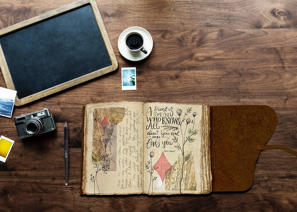 Store New Arrivals Add to Favorite View Feedback Contact Large Vintage Leather Journal - 8.5X11" - Antique Handmade Leather Bound Journal with Old Fashioned Deckle Edge Paper - Perfect for Writing a Grimoire Sketching as a Diary Description Item model number TVJA4 Style Unlined Vintage Deckle Product Dimensions 0.04 x 0.04 x 0.04 inches Number of Items 1 Color Brown Pages 200 Pages Cover Material Leather Material Type leather Sheet Size 8.5 x 11 Manufacturer Part Number TVJA4 Item Weight 3.45 pounds Theme Book Ruling Dotted Ruling Type Dotted Special Feature 248 cm Size A4 (22x28 cm) [Beautifully Handcrafted] High quality, thick, full grain 100% leather notebook that looks, smells and feels beautiful. Vegetable tanned buffalo leather will age with character - A lifelong keepsake for your thoughts and expressions [Deckle Edge Vintage Paper] 200 pages of off-white, 130GSM recycled cotton that is acid-free, chemical-free and tree-free. This gorgeous, thick, blank, unlined paper, prevents bleed-through and feels amazing. Environmentally sensitive and fountain pen friendly [Large Size] Escape with your Wanderings leather bound journal and create your own adventure. Makes a great leather writing notebook, sketch notebook, or watercolor pad. Write, dream, draw, or paint - create your own story. Large 8.5x11"/ 21x30 cm and 200 sheets / 100 pages (non-refillable) is the perfect large leather sketch diary and makes a great keepsake [Stylishly Ancient] Old fashioned cotton paper combined with the beauty of a distressed leather , hand stitched by Artisans, creates a keepsake you will cherish forever. Makes a great gift for the men, women, and wiccans in your life! Also available on Amazon in 6x9 size (B08P3MY1QW) Product Description Handcrafted by Artisans BEAUTIFULLY HANDCRAFTED High-quality full-grain 100% leather that looks, smells, and feels beautiful. Naturally tanned leather will age with character - or simply rub away your markings if you choose. A lifelong companion on your journeys. Four sizes to choose from. Three Styles of Deckle Edge Three styles of DECKLE EDGE Vintage Paper available. Choose from: Vintage Old Fashioned Aged Unlined Vintage Old Fashioned Aged Lined Ivory / White Perfect for creating your masterpiece or logging those pieces of everyday wisdom Handmade Paper Handmade Vintage Paper - 200 sheets of thick 120gsm recycled cotton that is: acid-free chemical-free tree-free This gorgeous, thick, BLANK paper prevents bleed-through and feels amazing. ENVIRONMENTALLY SENSITIVE and fountain pen friendly. Wanderings Quality OUR PROMISE : If for any reason you don’t love our Wanderings antique leather journals please let us know and we’ll make it right - no questions asked. Create Your Own Adventure TIMELESS - Escape with Wanderings and create your own creative masterpiece. Write, sketch, doodle, or draw, the options have no limits. Create Your Own Adventure TIMELESS - Escape with Wanderings and create your own masterpiece. Write, sketch, doodle or draw, the options have no limits. Create Your Own Adventure TIMELESS - Escape with Wanderings and create your own masterpiece. Write, sketch, doodle or draw, the options have no limits. Create Your Own Adventure TIMELESS - Escape with Wanderings and create your own masterpiece. Write, sketch, doodle or draw, the options have no limits. Dream Draw Create Write STYLISHLY ANCIENT - Antique cotton paper combined with the beauty of distressed leather, hand-stitched by Artisans, creates a keepsake you will cherish forever. Makes a great gift for the men, women, and wiccans in your life! Genuine Leather Wanderings Quality Handmade Deckle Edge Paper Timeless Design ABOUT US We offer the best prices around on high quality products. Our E-store includes media such as books, movies, music and games while offering electronics, toys, sporting apparel, clothing, tools, general home, garden items and more. SHIPPING We are always working hard to ensure your package arrives as soon as possible. Please understand that some factors like weather, high postal traffic, and the performance of shipping companies are outside of our control. We offer free shipping to the lower 48 states and ship within 2 business days of payment, usually sooner. We do not accept P.O. Boxes. Please provide a physical address. For shipping outside of the continental USA, we only use eBay's Global Shipping Program.The item is shipped to KY and then sent to the rest of the world. International customers are responsible for all duties and taxes. Continue to check out in order to calculate costs for shipping the item to your country. Messages regarding eBay's Global Shipping Program MUST be directed at eBay EXCLUSIVELY. RETURNS We offer a 30-Day Return Policy on items which you are not completely satisfied with. You have the option for a full-refund or an exchange of the item. No returns are available on items shipped outside of the USA. PAYMENT We accept PayPal. CONTACT US This page content is yet to come Please ad us to your favorite seller and visit again later Thank You CUSTOMER SATISFACTION We try our very best to make sure every customer is completely satisfied. If there's a problem, message us! We're happy to help.