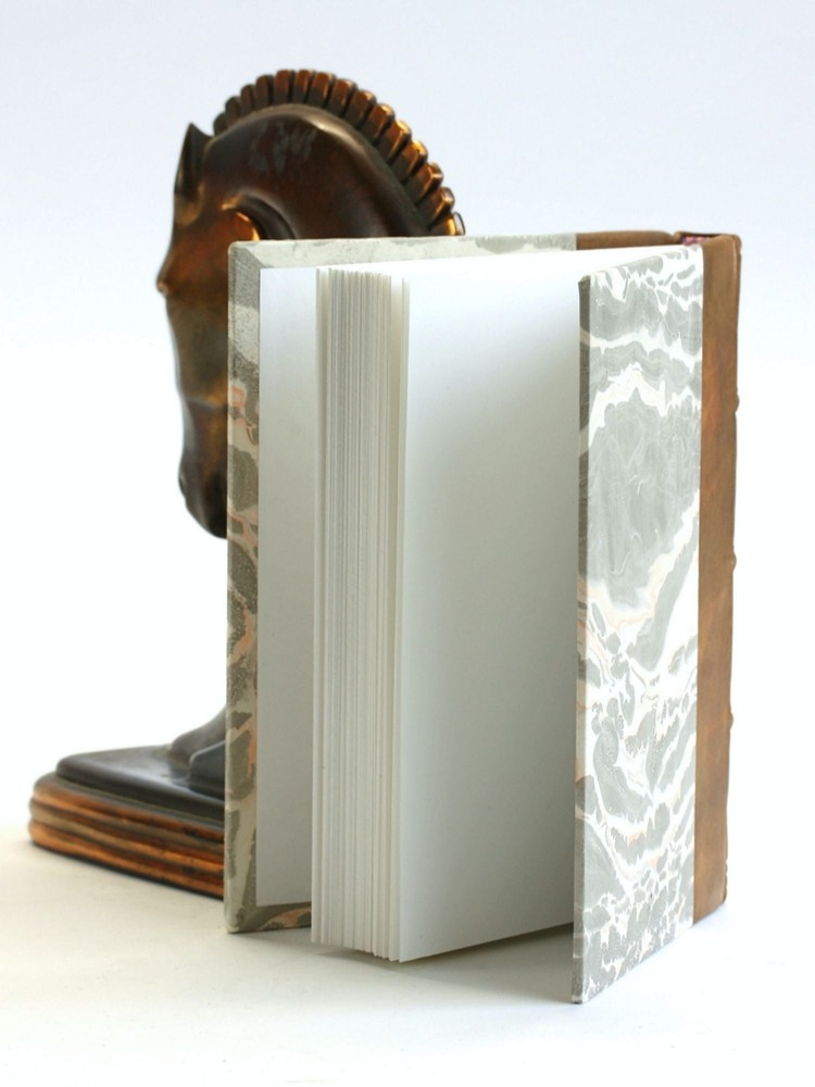 Larry Yerkes Hand-Bound Journal [#46 Quarter Brown Leather] Author: Yerkes, Larry Title: Larry Yerkes Hand-Bound Journal [#46 Quarter Brown Leather] Publication: Larry Yerkes, 2023 Description: Hardcover. A unique, hand-bound journal by master bookbinder Larry Yerkes. 4.5' x 5.75' Quarter Brown Calf over orange and gray suminagashi marbled paper over boards. FINE. Seller ID: 502717 Subject: Craft Arches Bookhouse is a brick & mortar bookshop in North Portland, Oregon. We carry good books of all kinds with an emphasis on scholarly humanities books. We are open for browsing Monday-Saturday, 10-5:00. Terms All orders ship within two business days, packaged professionally with care. We offer combined shipping on multiple orders. All items are guaranteed to be as described or they may be returned within 30 days of receipt for a full refund. This listing was created by Bibliopolis.