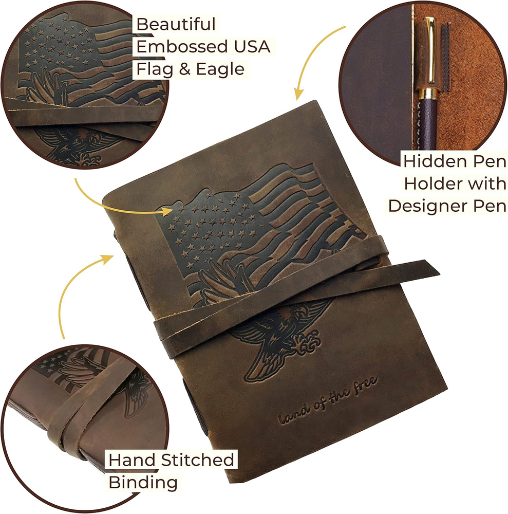 Store New Arrivals Add to Favorite View Feedback Contact Leather Bound Journal for Men and Women, Handmade Patriotic Gift Set with USA Flag Embossed Journal and Matching Eagle Bookmarks with Stylish Pen, Notebook, Sketchbook and Planner (300 Pages) (8X6") Description Sheet Size 8x6 inches Number of Items 1 Color Brown Binding Product Bundle Material Type leather Style Stylish,Unique Theme Book Ruling Plain Ruling Type Plain Special Feature Soft cover Cover Material Paper, Leather Size 8 inches X 6 inches UNIQUE GIFT SET: Handmade leather journal with beautiful USA flag and Eagle embossed front soft cover with matching bookmark, designer pen and hidden pen holder. Presented in an eco-friendly recycled box. A timeless gift for that patriotic someone who loves to write. PREMIUM LEATHER: Crafted with delicate yet super tough buffalo leather, including a long strap that secures the journal firmly. Our genuine leather is thicker than competitors and offers durability with lasting softness. RUSTIC DESIGN: Achieves a unique and distressed look when scratched and features decorative stitching for added charm. Coated with special natural oils that make handling a joy. Plus, it has a wonderful authentic leather smell that inspires you to write daily. QUALITY CREAM PAPER: 300 premium unlined multipurpose sheets for notes, daily plans, sketches, inspiring ideas, memories and more. Zero bleed through with fountain pens. Not refillable. PERFECT SIZE: 8x6" journal made to suit a wide range of writing styles and 7" bookmarks go wonderfully together. We also offer many other sizes and styles of journals, including refillable journals. There's something for everyone! Product Description ABOUT US We offer the best prices around on high quality products. Our E-store includes media such as books, movies, music and games while offering electronics, toys, sporting apparel, clothing, tools, general home, garden items and more. SHIPPING We are always working hard to ensure your package arrives as soon as possible. Please understand that some factors like weather, high postal traffic, and the performance of shipping companies are outside of our control. We offer free shipping to the lower 48 states and ship within 2 business days of payment, usually sooner. We do not accept P.O. Boxes. Please provide a physical address. For shipping outside of the continental USA, we only use eBay's Global Shipping Program.The item is shipped to KY and then sent to the rest of the world. International customers are responsible for all duties and taxes. Continue to check out in order to calculate costs for shipping the item to your country. Messages regarding eBay's Global Shipping Program MUST be directed at eBay EXCLUSIVELY. RETURNS We offer a 30-Day Return Policy on items which you are not completely satisfied with. You have the option for a full-refund or an exchange of the item. No returns are available on items shipped outside of the USA. PAYMENT We accept PayPal. CONTACT US This page content is yet to come Please ad us to your favorite seller and visit again later Thank You CUSTOMER SATISFACTION We try our very best to make sure every customer is completely satisfied. If there's a problem, message us! We're happy to help. WE ACCEPT Copyright © 2021 AutoDS. | All Rights Reserved