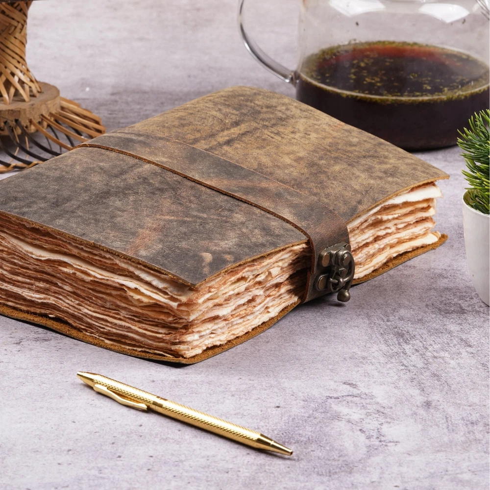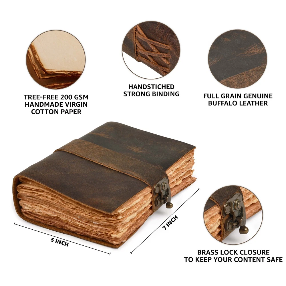 VINTAGE LEATHER JOURNAL: A Perfect Journal for Women and Men by Leather Village. This Vintage Journal is Made from Genuine Buffalo Leather which is naturally tanned with oils and is chrome free. As these Daily Journals are made with genuine Cruelty free leather so each vary in look and shade producing a unique item. JOURNAL NOTEBOOKS WITH STURDY BINDING: Belt Wrap around closure to keep the papers of the journal safe when not being used. A sturdy hand stitched binding to make sure that no paper comes out loose. PERFECT GIFT: IDEAL GIFT FOR WOMEN MEN. This Leather Notebook makes a Unique Gift for Women Men - Teen Girls Boys. WATERCOLOR PAPER: This leather Sketchbook comes with No Bleed Scrapbook Paper. The Mixed Media Sketchbook is Suitable for Watercolor, Acrylic Colors, Pastel Color and all Dry & Wet Mediums. Use it like Sketch Pad, Watercolor Sketchbook etc. LEATHER VILLAGE PROMISE: - Leather Village Leather Bound Journal comes with the Trust and promise of Purity of craftsmanship with each Writing Journal. Product Description