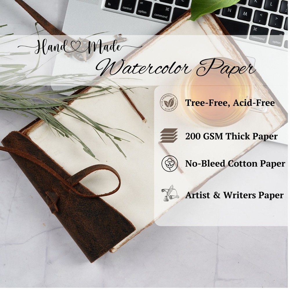 Leather Cover : This Leather Village Vintage Journal is crafted from Cruelty-Free Water Buffalo Genuine & Thick Leather, which is naturally tanned with oils, salt, and scents with Classy Pentagram Key closure which gives you rustic feel of old journal and Can Be Used as Bookmark. Size & Dimension : 7 X 5 inches - Easy to Carry for Travel and Daily Use which is fit in Easily Handle Notebook, You Can Fit with Minimum Space, Easily Handle in Long Journey. The notebook opens 180°fully and lies flat, so you can write on either side of the page with just one hand. Eco-friendly Paper : Elevate your writing experience 200 Pages/100 Sheets of 150 GSM thick Virgin Cotton Handmade Deckle Edge watercolor Paper which is made from recycled cotton waste which is Tree-free, pH-Neutral, Chemical-free, No-bleed paper and suitable for any kind of dry and wet mediums. Multipurpose Journal : Write/sketch/Watercolors/doodle/Bible Journal/Scrapbook/Spell book/ Travel journal/Witch craft/Art Book on your journal notebook with a Fountain Pen Calligraphy Pen, Ball Pen, Brush Pen, Acrylic Colors, Watercolor. Ideal for any kind of Dry & Wet medium. Timeless Gift : Perfect Use for Business Executive, Poetry Work, Journalists, Craftsman, Writer. A Lovely Treat for Your Loved Ones for An Anniversary, Birthday or Graduation Present, Or for Someone Starting A New Adventure and A Perfect Gift for Those Who Love Vintage One.