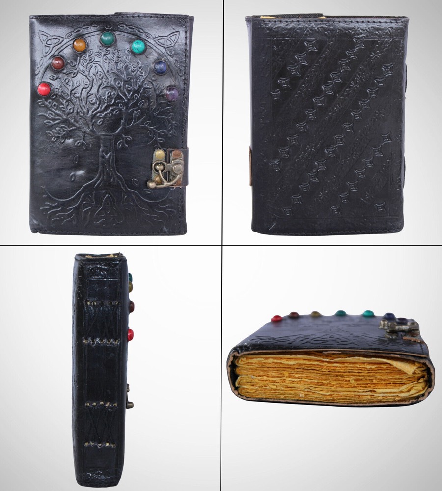 Welcome To MADOSH (Brand: Madosh- Mad Over ShoppingTM) Indulge in the art of journaling with our Timeless Elegance Leather Diary. Immerse yourself in the calming embrace of nature with Tree and Stone Leather Journal. Designed with versatility in mind, our diary is a portable haven for nature lovers, writers, and artists. Slip it into your bag and carry the serenity of nature wherever inspiration takes you. This journal is not just a blank canvas, it's a work of art that speaks to the beauty of nature. With 200 unlined pages made from high-quality, acid-free paper, this journal provides the perfect space for your thoughts, sketches, and creative expressions to flourish. A Clasp closure not only adds a touch of rustic charm but also ensures the security of your innermost thoughts. Make it a thoughtful gift for a friend, family member, or yourself, and share the beauty of nature with our responsibly sourced and eco-friendly leather. SIZE: Height: 7" (18 cm) | Length: 5" (13 cm) | Width: 3" (8 cm) FEATURES: Genuine leather 200 Pages Stone studded Clasp closure Vintage paper Handmade Country of origin: India NOTE: 100% Genuine leather diary. Color may slightly vary from pictures. Paper used in diary are 100% recycled cotton acid free paper.