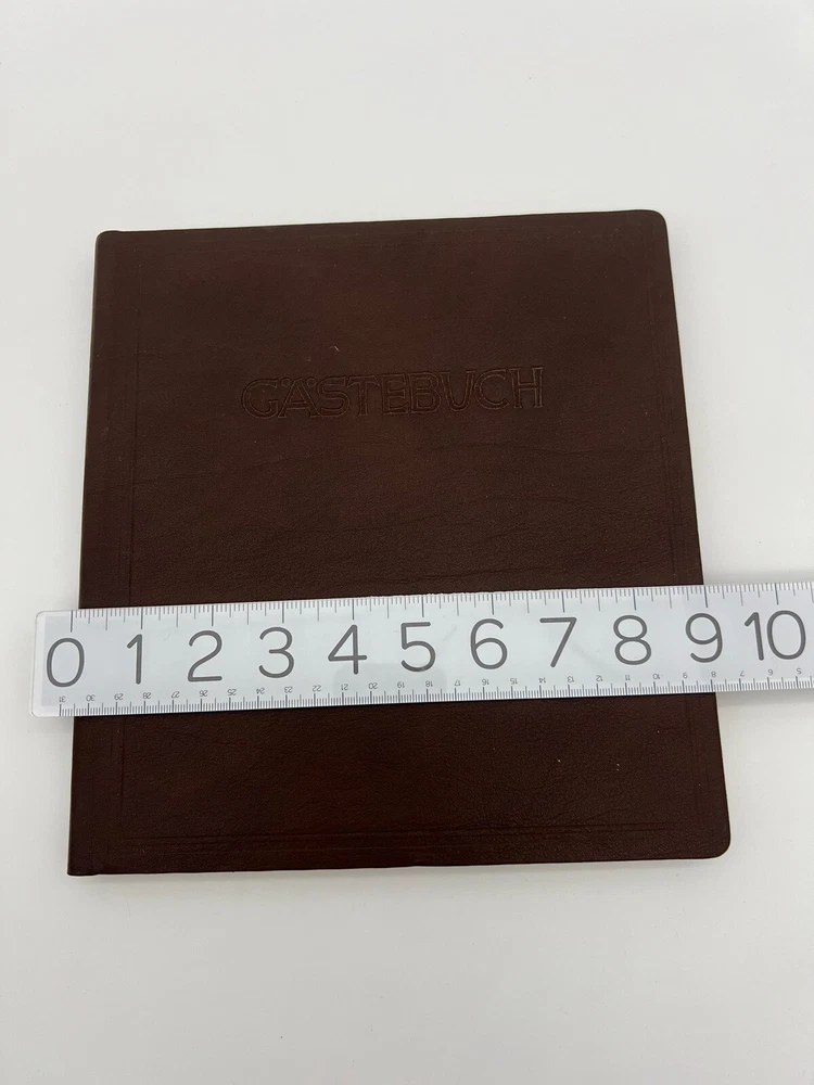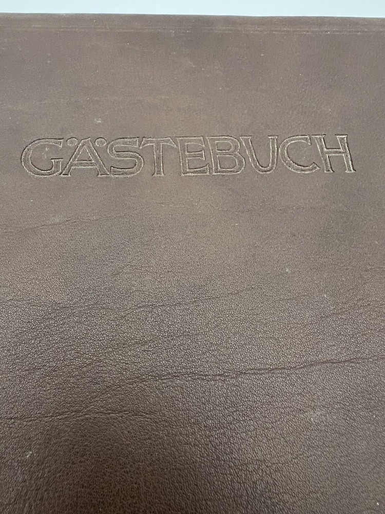 This Airbnb vacation rental guest book is a must-have for all visitors to sign. The hardcover guest book has a beautiful leather bound cover with gold gilded pages perfect for capturing memories of your stay. Measuring 9.5in in length and 9in in height, this vintage German guest book is the perfect way to remember your travels. The book is preowned. Previous signed pages have been removed. It was published by Steinmetz in Germany. Please review the photos for an accurate representation of this book. The book falls under the genre of travel and journal and its topic includes travel guide, books, and guest book.