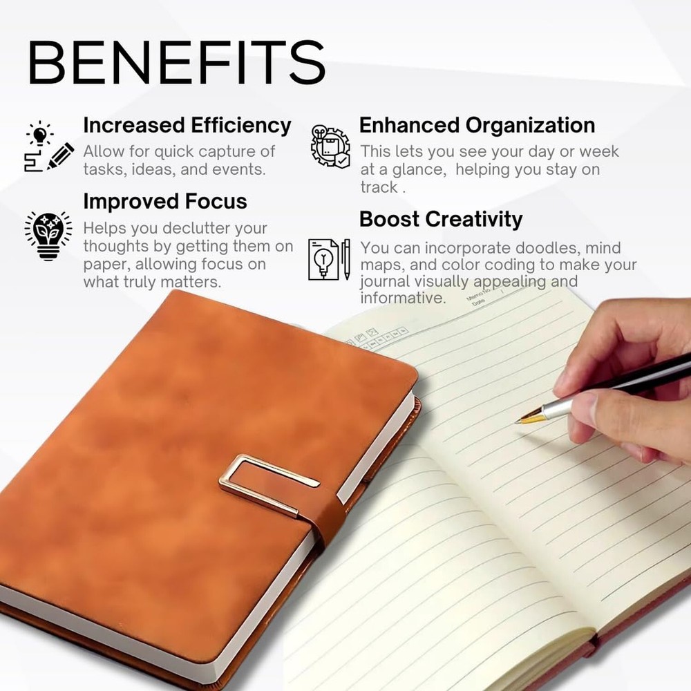 Leather Journal A5 Hardcover Notebook with Pen compartment, Leather Bound for Women Men School, Office, Work, Daily and Travel Diary Writing Journal (Brown) Description Features: Classic Black Ruled Notebook - Discover elegance and quality with our classic brown lined journal notebook. Crafted with care and available at a competitive price, this notebook is perfect for everyday use. It provides ample space for notes, lists, musings, and more. Each notebook includes a luxury metal accessory, making it an excellent gift choice. Product Details: Brand: Casanovea Color: Brown Theme: Book Sheet Size: A5 Pages: 240 Cover Material: Faux Leather Style: Classic Ruling Type: Ruled Special Feature: Soft cover Number of Items: 1 Manufacturer: Casanovea Brand: Casanovea Item Weight: 12.3 ounces Product Dimensions: 8.2 x 5.7 x 0.82 inches Item model number: Parent Color: Brown Cover Material: Faux Leather Number of Items: 1 Ruling: Ruled Sheet Size: A5 Manufacturer Part Number: Parent Date First Available: March 19, 2024 Handling We will ship all orders within 3 business day of payment. Delivery We Do Not Ship Outside of the Continental US. Return Policy All items qualify for returns within 30 days of receipt. Buyer is responsible for return shipping on any item that is not damaged. Feedback We take our reputation seriously, we buy and sell online, so we understand the value of trust. If you are unsatisfied with your order, please contact us and we will work with you to resolve it to your satisfaction.