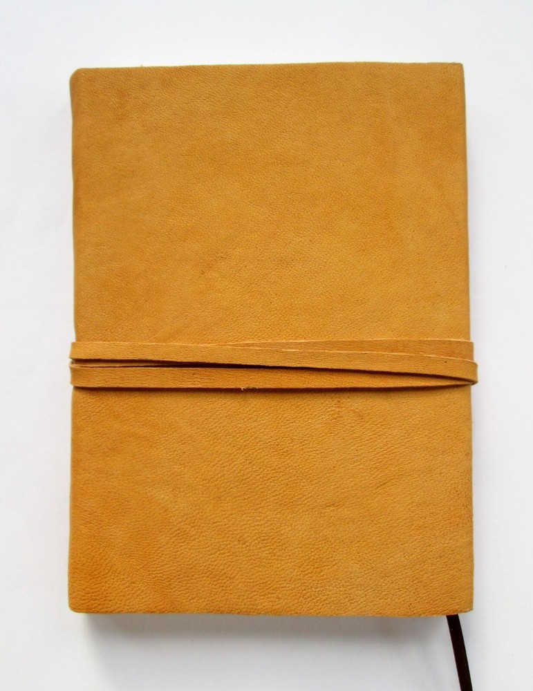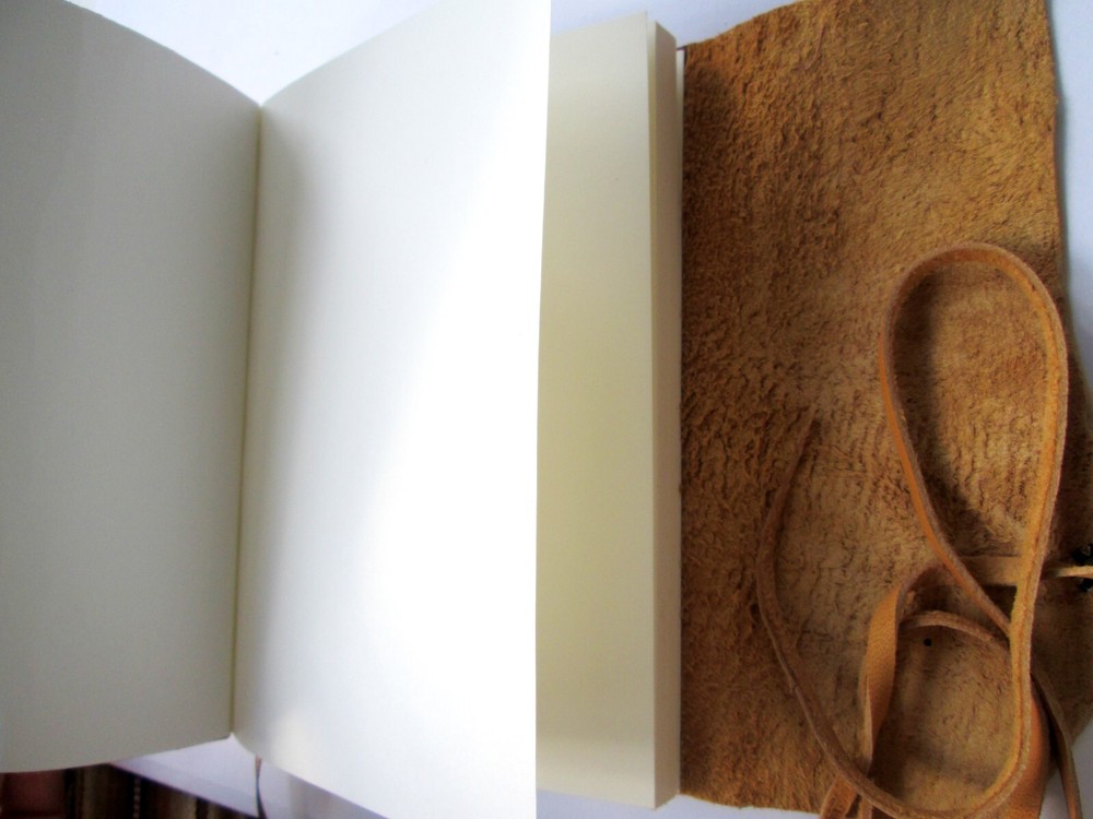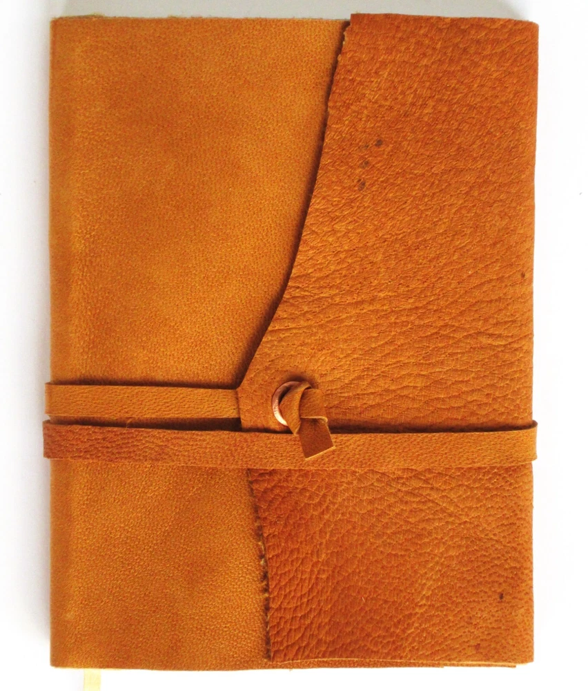 Leather-bound journal, blank, handmade with an original cover in rustic leather. Each notebook is an individual creation. The leather has a soft feel and the paper is a light cream color. The leather is brought from the Andes of Peru, worked by native Andean people with the same care as their ancestors. This journal can be used as a notebook, diary, guestbook or a sketchbook. The paper is smooth and takes all writing instruments nicely. The leather cord wraps around the journal keeping it securely closed and your thoughts private. The journal contains approx.100 sheets. This paper takes both fountain pen and ballpoint pen ink very well. These lovely quality journals would make excellent gifts for birthdays, anniversaries, weddings, graduations, vacations or for any other special occasion. Size : 5" Paper : Bond cream colored, 80 g/m², 200 pages (counting both sides) Leather: Thin and flexible, colored in the front raw in the back
