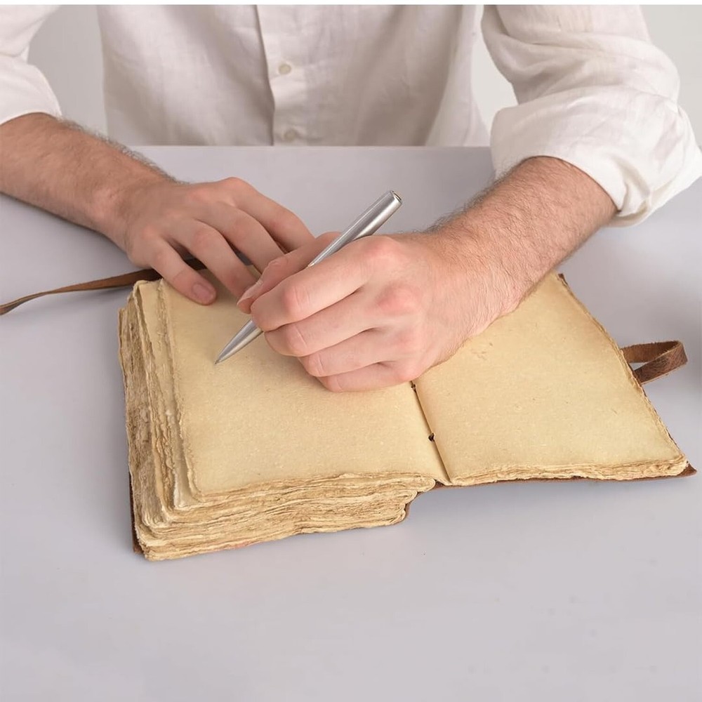 Leather Journal Travel Diary, Handmade Vintage Bound Notebook For Men & Women, Antique Finish, Genuine Buffalo Leather- Quality Unlined Paper Perfect for Notes, Art Sketchbook, 7X5 Inches, Brown Description BEAUTIFUL JOURNALS THAT WILL LAST Beautifully Soft and Durable Dark Brown Genuine Water Buffalo Leather (Not Faux or PU leather used) No glue used - hand-stitched binding means the pages stay firmly in place (Paper is not refillable) A lovely distressed vintage style with a gorgeous, real leather scent Handmade leather - naturally tanned with oil & Deckled, not with acids that end up in rivers. Naturally tanned with special oils, if the distressed leather gets marked or scratched, you can rub these markings and they will fade away. The hand-crafted nature of these journals means no two are quite the same. The soft brown leather gives a vintage look with the asymmetric flap adding a certain rustic charm. It is an utterly unique and wonderful gift for a friend or to treat yourself to as a special keepsake. Tree-Free Paper & No Bleed Through 100 sheets/200 pages (counting both sides) of Blank/Plain/Unlined/Unruled, brown-colored paper Hand-crafted with Recycled Cotton paper, perfectly complementing the brown leather Tree-free and Acid- free means you are purchasing a product that is less harmful to the environment. The perfect number of pages, not too bulky, so it is easy to write in from the very first page 125gsm thickness means it is beautifully soft to write and draw on, use any pen without any ink bleeding through Made by gifted artisans using handcrafted techniques passed down through many generations. Our Leather Journals come in 2 handy sizes: Medium 7" x 5" Portable Traveller’s size Large 9" x 6" For Home and Office use Easy for handwriting, drawing, or sketching and compact for carrying in your bag. Use it for Daily Notepad or Bullet Journal Artists Sketchbooks or Poetry Work Instagram Photobook or Scrapbook Girls Diaries or Teen Journaling Food Planner and Grocery Lists Travel Diary Weight Watchers Records Appointments Reminders Journalists Notebook. Features: DURABLE BUFFALO LEATHER made from premium quality buffalo leather is second to none with a wonderful leather smell, its soft-feeling, yet super tough. Oil pulled leather finish. Beautifully crafted & unique design. Soft & Supple Dark Brown Genuine Water Buffalo Leather with a real leather scent. Being hand-made from 100% natural leather, our journals can vary in look & shade, producing a unique item, no two are quite the same - a special keepsake for your thoughts, plans & ideas. RUSTIC DESIGN- It has an asymmetric shape at the front as its hand made and decorative leather string stitching on the spine adds antique charm to this lovely keepsake for kids, men, women, students, artists, journalists, or travelers of all ages. A long leather strap wraps around the journal to secure the notebook firmly when not in use. Perfect for all your daily writing and drawing needs. This versatile notebook is ideal for several uses and allows for easy handwriting, sketching, and drawing EARTH-FRIENDLY: 100 sheets/200 Handmade cotton pages (counting both sides) of Blank/Plain/Unlined/Unruled, brown-colored paper (NON-REFILLABLE), hand-crafted with eco-friendly recycled cotton which is acid-free & tree free - environmentally kind! This rustic leather notebook from Rustic Vintage is the perfect writing companion for journal lovers and anyone with a taste for things with an antique or vintage feel. NO BLEED THROUGH- You can Easily Draw through from any type of Pencil, Pen, Ball Pen, Gel Pen, Sketch Pen, Ink Pen, Sparkle Pen will glide through the paper smoothly without any ink bleeding through on this thick quality paper weighing 125gsm. Easy for handwriting, drawing, or sketching and compact for carrying in your bag. Ideal for Artists, Diaries, Travelling, Business, Teen Journals, Poetry Work, Journalists, laboratory notebook, Food Planner, Scrapbook, and Christian Bible Journaling. PERFECT COMPACT SIZE: for any writer 7" x 5" so easy to carry when traveling or to keep at home or work next to your bed or desk. The gift box included making this a perfect gift for Kids, Adults, Young & Elderly Man & women for Birthdays, festivals, Christmas, Anniversaries. Whether you are a huge fan of keeping a journal or just beginning, this rustic writing diary is here for you! Such a great way to empower your thoughts and ideas, record important life events, or simply blow off some steam! Product Details: Brand: RusticVintage Color: Brown Unlined Theme: Book Sheet Size: 5.5-x-7.5-inch Pages: 200 Pages Cover Material: Leather Style: 7X5 Inches - Brown Unlined (Deckled Edge) Ruling Type: Plain Special Feature: Lock Number of Items: 1 Manufacturer: Rustic Vintage Brand: RusticVintage Item Weight: 15.8 ounces Product Dimensions: 5 x 1.5 x 7 inches Is Discontinued By Manufacturer: No Color: Brown Unlined Cover Material: Leather Material Type: leather Number of Items: 1 Size: 7 Inches X 5 Inches Ruling: Plain Sheet Size: 5.5-x-7.5-inch Manufacturer Part Number: JB 005 Date First Available: November 24, 2020 Handling We will ship all orders within 3 business day of payment. Delivery We Do Not Ship Outside of the Continental US. Return Policy All items qualify for returns within 30 days of receipt. Buyer is responsible for return shipping on any item that is not damaged. Feedback We take our reputation seriously, we buy and sell online, so we understand the value of trust. If you are unsatisfied with your order, please contact us and we will work with you to resolve it to your satisfaction.