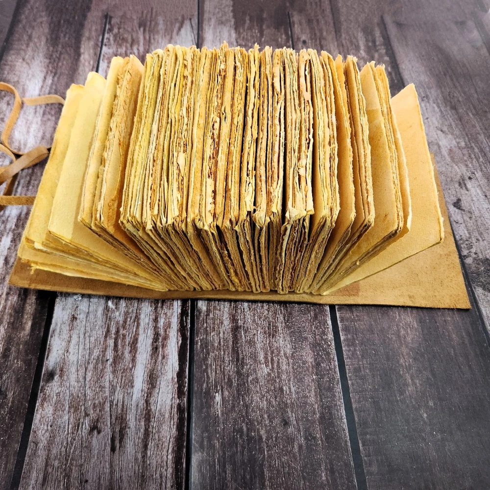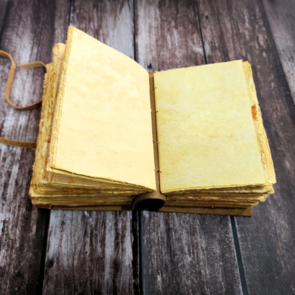 This exquisite leather journal features a beautiful tree design embossed on its cover, making it a unique and elegant choice for anyone looking to jot down their thoughts or sketches. The journal is bound in high-quality leather, ensuring durability and a luxurious feel. With 400 deckle-edged pages, this writing journal provides ample space for creativity and expression. Measuring at 7 by 5 inches, this leather journal is the perfect size to carry around and capture inspiration on the go. Whether for yourself or as a thoughtful gift for an artist or writer, this leather journal with a tree design is sure to impress and inspire.
