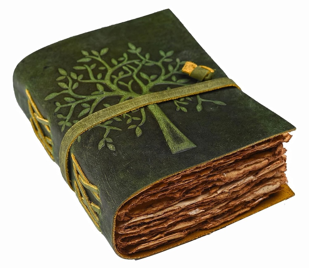 This leather journal is a one-of-a-kind piece that will elevate your writing experience. The cover is made of high-quality leather from India, and the pages are perfect for your notes and thoughts. The journal is handmade and features the Tree of Life design, adding a touch of elegance to your writing. It's perfect for professionals who want to keep track of their thoughts and ideas, or for anyone who wants to add a touch of sophistication to their writing. The journal is blank, allowing you to write whatever you want, and the cover material is leather, ensuring durability and longevity. This is a must-have for anyone who wants to take their writing seriously. *Product details Handmade journal, blank books, personalized leather, vintage diary, genuine leather journal, anniversary gift, gifts for her, personalized gifts, gifts for him, leather journal, valentines gifts, a5 journal Customized size Size - 7x5 inches (200 on both sides) Size - 8x6 inches (200 on both sides) Size - 9X12 inches (200 on both sides) Paper - 100 pages (200 on both sides) Paper - Pure Cotton Hand Made Plain Paper (Unline) Leather Colour: Brown and dark brown Leather - Full Grain Leather (Best Quality) Soft and durable natural handmade leather Quality Metal Hardware (Brass metal) Ideal gift for writers, poets, artists etc. Tied with traditional sewing methods *Materials: Full Grain Leather, Antique Brass Hardware, Handmade Sheets, Natural Leather, Handmade Paper, Unlined Paper, Leather Journal, Leather Diary, Leather Unlined Diary, Blank Paper Diary, Leather Cover, Notebook, Leather Sketchbook Artist Sketchbook, Photo Album, Traveling Notes, Business Executive, Logbook, Poetry Work, Journalist, Food Planner, Instagram Scrapbook, Bible Journalism, Documenting Your Spiritual Journey, A Dream Journal, A Book of Shadows, Grimoire, Sketchbook, Idea Book for Ideal , prayer book, gratitude journal, a daily journal or anything else you can think of. Luxury, Handmade, Fair Trade and Eco-Friendly Capture and share your thoughts before you walk away Handy for handwriting, drawing or sketching and compact to carry in your bag hpprox 100 sheets/200 pages of online paper Hand crafted non-bleeding paper made from recycled cotton that is chemical free Due to the Coptic binding process, this magazine is not refillable - it is unique in its kind! Hand-stitched Coptic leather binding secures pages firmly Suitable for all pens and pencils easy to care for Wipe slightly dry with a tissue, or rub in circular motions to reduce scratches and dust Shipping&Delivery Free worldwide shipping on all products. USP Inspired by distressed vintage style Handcrafted by Me and Skilled Village Artisans Fair trade factory price (no middleman) GUARANTEED HIGH QUALITY SELECTED LEATHER y friendly (no chemicals used) Handmade recycled cotton pit paper Welcome to the world of Leather Diary Handmade by