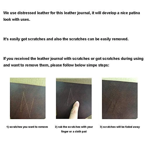 Product Page Leather Journal Writing Notebook - Genuine Leather Bound Daily Notepad Description: Features: GENUINE LEATHER JOURNAL CRAFTSMANSHIP – Crafted with genuine leather, this leather bound journal offers a soft touch exterior with natural, distressed look that’s truly exclusive leatherbound notebook journal MULTIPURPOSE LEATHER JOURNAL NOTEBOOK & PLANNER – leather journal for men and leather notebook for women ,This versatile men’s and women’s journal can be used as an appointment book, daily journal, sketchbook, or travel diary LEATHER BOUND NOTEBOOK PREMIUM QUALITY PAPER – Every leatherbound notebook journal is filled with 120 sheets of 100gsm weight, 6.5 mm ruled, 2-sided kraft paper that fits most pens (Refill Paper: B0CNK6FPCF) PERFECT SIZE - Small leather notebook Compact 7.5” x 5.5” size, Leather journal writing notebook easy to carry when travelling or in your daily lifeHighly recognized leather journaling notebooks and leather journal lined THE TIMELESS LEATHER WRAP JOURNAL GIFT - A lovely treat for your loved ones for an anniversary, birthday or graduation present, or for someone starting a new adventure Open leather journals for writing