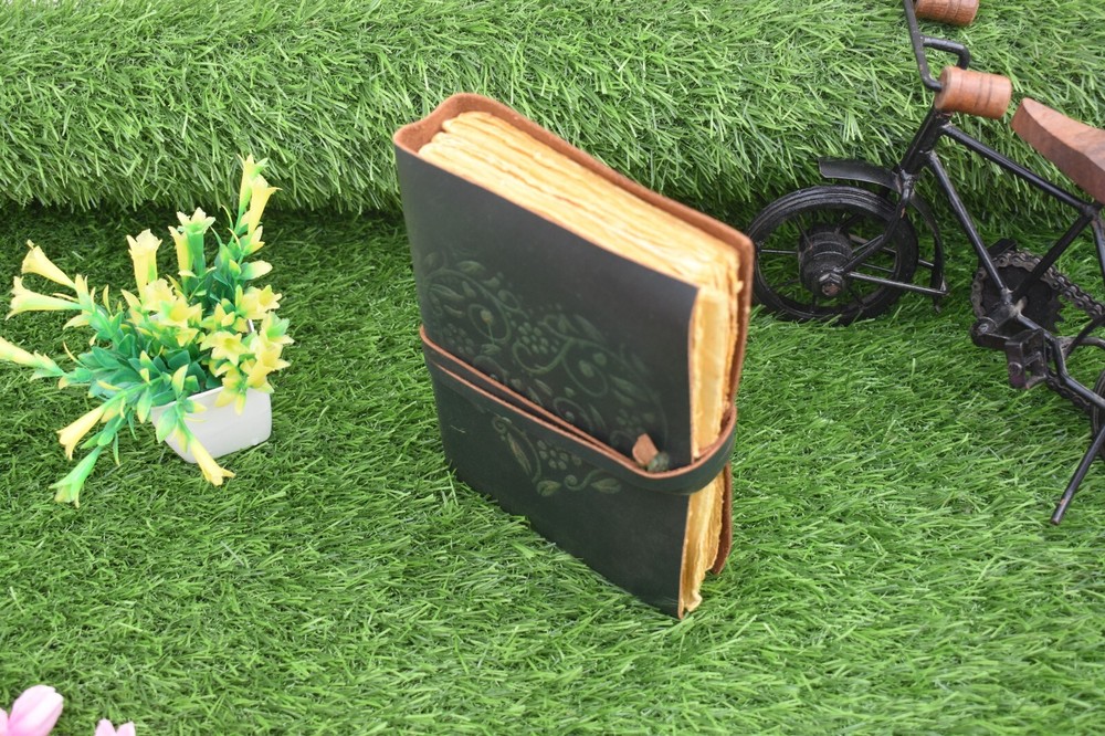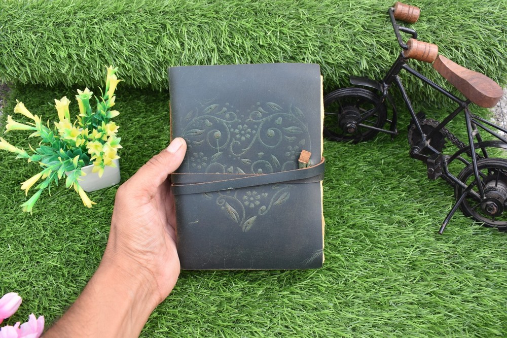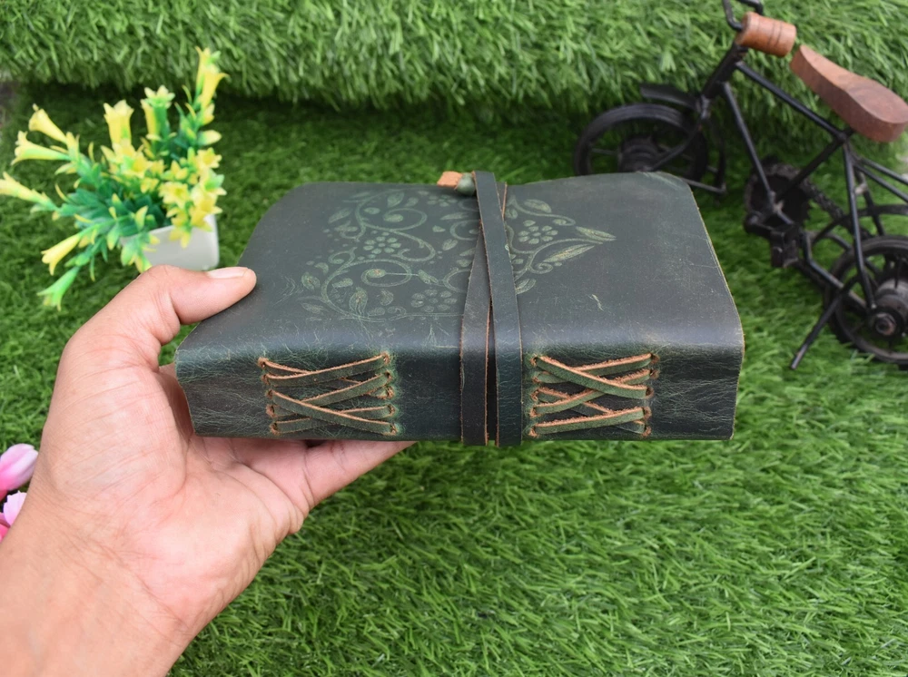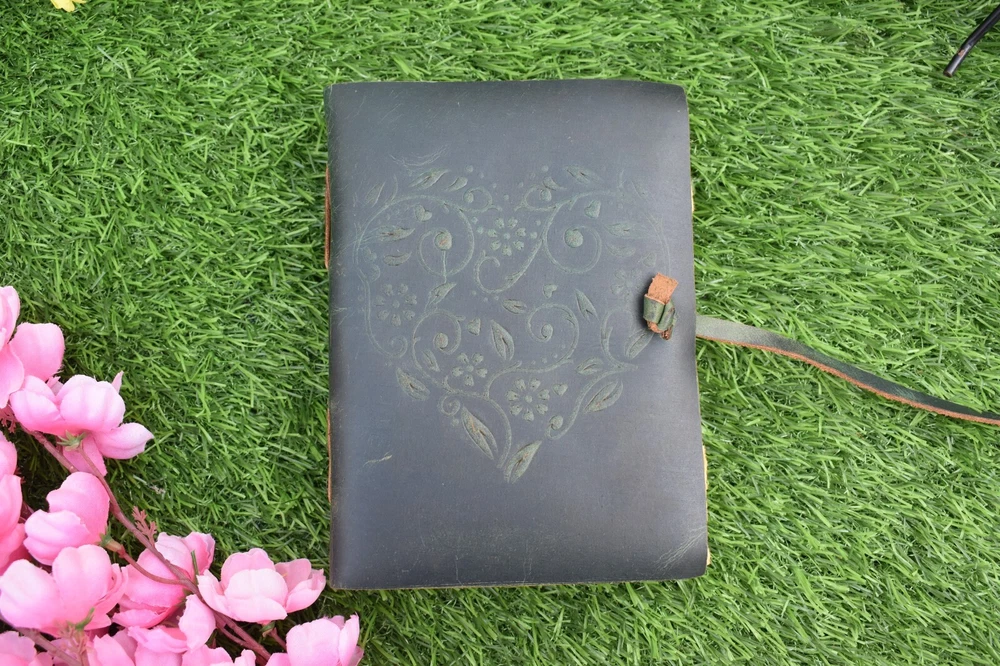 Handmade leather journal Size - 7x5 Inch Weight - 400 gram Pages - 200 pages Leather Journal - Antique Handmade Deckle Edge Vintage Paper Leather Bound Journal - Leather Journal for Women Green Embosed Gift for Mother Daughter Wife Girls Heart Unlined Love Diary Travel Notebook - Leather Sketchbook - Drawing Journal - Great Gift ( Green ) Our handmade artisan leather journals are crafted from genuine leather. embossed on to the cover using hand tools by highly skilled artisans. Being hand-made from 100% natural leather, our journals can vary in look & shade producing a unique item, no two are quite the same. 【QUALITY PAPER】 Inside this 1.5 inch thick leather bound journal you will discover 200 pages (100 sheets) 【PERFECT FOR GIVING】 Suitable for both men or women, this daily travelers notebook is a perfect present for an avid writer. Ideal to give for birthday, valentines, graduation or wedding anniversary. 【OUR PROMISE】 We are positive you will love our products, but if you don't for any quality reason, we will replace or refund for up to 14 days after purchase. Our friendly customer service team are always available to answer any questions you might have.