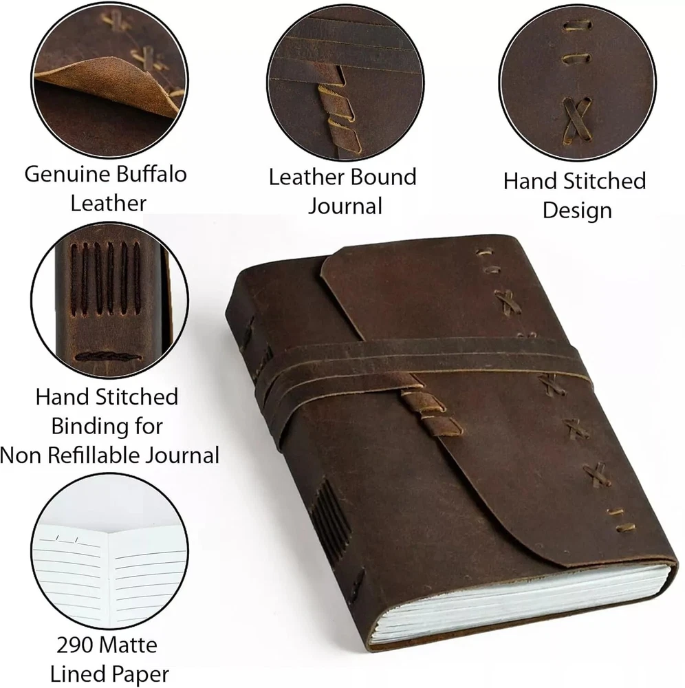 Elegant Leather Bound Writing Journal for Men & Women – 8x6 Inches, No Pen