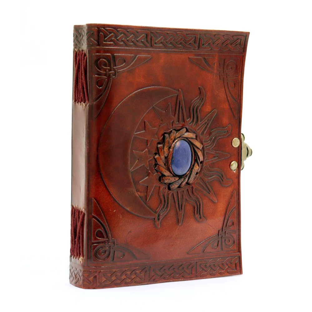 This genuine leather journal with Unlined paper is the perfect journal to capture your important memories. All our journals are handcrafted and are complemented with a beautiful engraved design. The rustic finish can accompany you in all your travels or as a daily companion to capture your thoughts. The paper is high quality, natural 115GSM paper that prevents marker bleed, pen bleed. The hand stitched design will last for years to come. This leather journal for men and women is a perfect gift for any occasion. We value our customers and are committed to ensuring a wonderful experience. Leather Journal with Unlined Pages - SUN & MOON Blue Stone Leather Bound Writing Journal for Women & Men (7x5 in) Unlined Journals for Women, Leather Bound Notebook Journal & Diary, Embossed Stone Journal for Writing Handcrafted from genuine top grain leather: Each journal is specially designed and handmade from premium top grain leather. The artful design and hand stitching to create a timeless space for your thoughts Unlined paper: 180 pages of thick, natural 115GSM kraft paper. Perfect for use with many pen types. Thick paper prevents bleed through. Pages are Unlined with 5.5mm spacing. Note: page count is 180 pages, 90 sheets Tell your story: We designed this classic leather journal as a time capsule for your thoughts. Capture your important memories, accomplishments (and failures), life-changing moments and evolving dreams as a keepsake to reflect upon in years to come A special keepsake: Give your loved ones something truly special that will last for years to come! Great for a birthday, anniversary, or graduation