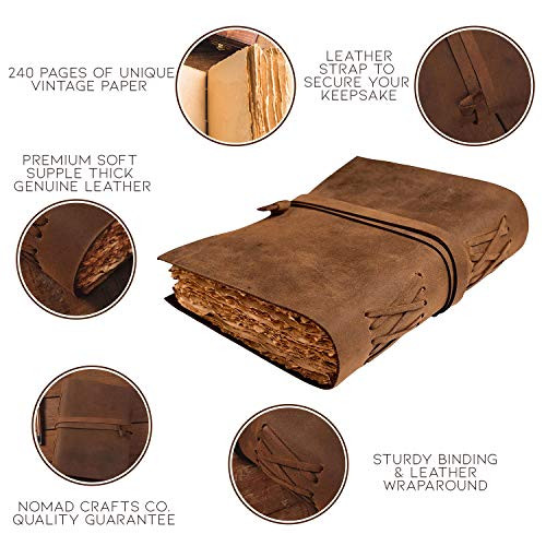 30 Days Return Policy Fast Delivery Trusted seller Leather Journal-Vintage Leatherbound Journal - 7.5" x 5.5" Vintage Brown Product Description Unique Handmade Vintage Paper - Nomad Crafts Co. Vintage Journal is made with 240 pages of Antique Paper which looks like it was pulled from history. You will fall in love with the the antique handmade cotton paper which is very unique to our Nomads Vintage journal. Use Any Kind Of Pen - Sketch, Doodle, Write on your Leather Bound Journal with a Calligraphy Pen Fountain Pen, Brush Pen, Ball Pen, Acrylic Colours, Watercolor and many more. Premium Soft Supple Thick Genuine Leather - The Nomad Leather Journal is made from naturally tanned full grain leather which feels and smells Amazing. It's soft and very comfortable in the hands. Don't be fooled with competitors using cheap substitutes, this is the real deal. Sturdy Binding And Leather Wraparound - Sturdy hand stitched binding to make sure that no paper comes out loose from your vintage notebook . The leather wraparound keeps the papers of the journal safe and secure. Our 365 Day Replacement Promise - We are very confident that you will fall in love with your Vintage Journal that we offer a 1 year .If you are not happy with your leather journal for any reason we will offer a FULL REFUND or a FREE REPLACEMENT. No Questions asked! Shipping Returns Payment Shipping Shipping is FREE to all addresses other than APO/PO boxes in the lower 48 states. All our stock ships from US-based warehouses. Shipped via USPS or UPS (depending on location and package weight) Unless stated otherwise, all orders will ship within 24-72 hours of your payment being processed. Check our feedback to see the great reviews of FAST shipping we offer. Returns As our valued customer, we will do our best to make sure the product you receive arrives to you on time and as expected. If you are not satisfied with your purchase, please contact us within 30 days of receiving your order to process a return. Payment We currently accept payment via eBay managed payments only. Once payment is cleared, we will dispatch your shipment within 1-3 business days. Please refer to the "Shipping" tab for more information regarding shipping speed to your destination.