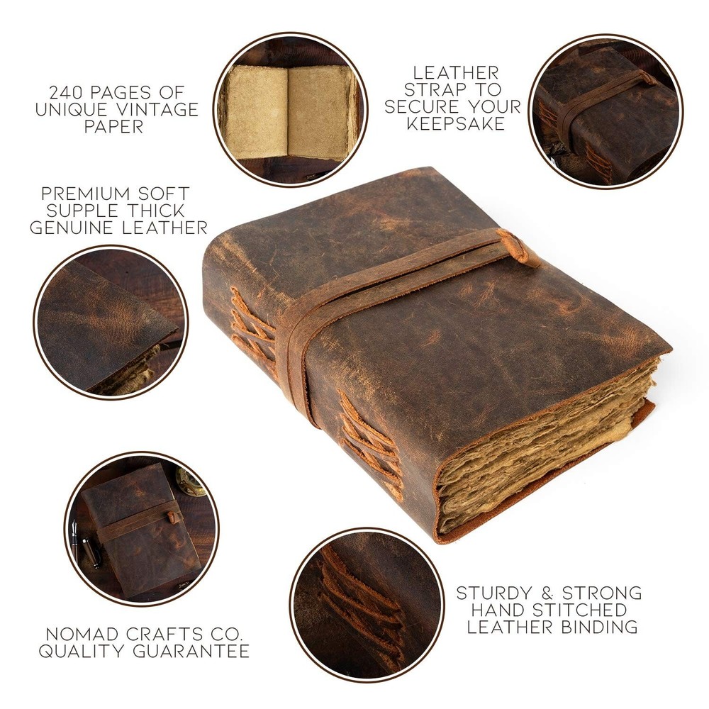 Leather Journal-Vintage Leatherbound Journal - Handmade Antique Deckle Edge Paper - Leather Sketchbook - Book of Shadows Journal - Thick Journal - Vintage Journal Product Details Size: 7.5" x 5.5" Color: Red Brand: NomadCraftsCo. MPN: NOMAD-VIN-RED-7-5 UPC: Does not apply EAN: Does not apply Brand: NomadCraftsCo. Color: Red Theme: Book Sheet Size: 5 x 8 or 9 x 6 Pages: 240 Pages Cover Material: Leather Style: Unique,Vintage Ruling Type: Plain Special Feature: Soft cover Product Dimensions: 7"L x 5"W x 0.01"Th Manufacturer: NomadCraftsCo. Brand: NomadCraftsCo. Item Weight: 14 ounces Product Dimensions: 7 x 5 x 0.01 inches Item model number: NOMAD-VIN-RED-7-5 Color: Red Cover Material: Leather Number of Items: 1 Size: 7.5" x 5.5" Ruling: Plain Sheet Size: 5 x 8 or 9 x 6 Manufacturer Part Number: NOMAD-VIN-RED-7-5 Date First Available: June 18, 2020