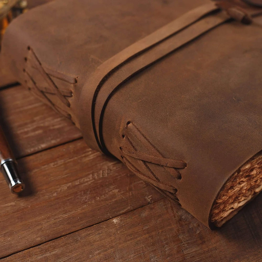 Leather Journal-Vintage Leatherbound Journal - Handmade Antique Deckle Edge Paper - Leather Sketchbook - Book of Shadows Journal - Thick Journal - Vintage Journal Product Description A BEAUTIFUL LEATHER JOURNAL OF THE HIGHEST QUALITY Entirely handcrafted by artisans, each leather-bound journal is a work of art. We use a thicker, higher-grade leather combined with incredible craftsmanship to create a journal that is soft and supple in the hand with that fabulous, intense leather scent. Our water buffalo leather is prepared in the crazy horse style and takes on its own distressed character with use. The natural colour variations make each journal unique. You will be as proud to own your vintage journal as we have been to make it! LOOK AND FEEL OF AN OLD BOOK The Vintage Journal is made from 150 GSM Thick and Rustic Paper which makes you feel like you are writing in an old relic. It will hold any ink without any bleed-through. The Leather Journal can be used as a Sketchbook, Book of Shadows, Grimoire, Poetry journal, Food journal, spellbook, memory journal, and many more. It transports you to a world all your own. STYLISH AND A TIMELESS MASTERPIECE Old Fashioned Paper along with the beauty of distressed leather, handmade by Artisans creates a masterpiece that you can cherish over decades. Add your special touch and you have a piece of art to hand down to the generations. STURDY BINDING AND LEATHER WRAPAROUND Sturdy hand-stitched binding to make sure that no paper comes out loose from your vintage notebook. The leather wraparound keeps the papers of the journal safe and secure. Naturally tanned buffalo leather will age with character - or simply rub away your markings if you choose. A lifelong companion on your journeys A BEAUTIFUL LEATHER JOURNAL OF THE HIGHEST QUALITY LOOK AND FEEL OF AN OLD BOOK STYLISH AND A TIMELESS MASTERPIECE STURDY BINDING AND LEATHER WRAPAROUND Why you should buy the Nomads Vintage Leather Journal ? THE STYLISHLY ANCIENT GIFT The antique cotton paper combined with the beauty of distressed leather, hand-stitched by Artisans, creates a keepsake you will cherish forever. Makes a great gift for the men, women, and Wiccans in your life! CREATE YOUR OWN ADVENTURE Escape with your Nomad Journal and create your own masterpiece. Write, Sketch, Doodle, or Draw, options are limitless. IMMACULATE CRAFTMANSHIP These journals are built from 240 pages of excellent quality handmade vintage papers with 150 GSM thick, and rich, durable handcrafted genuine brown leather covers. Guaranteed no bleed-through with ballpoint or gel pens. Item model number NOMAD-VIN-7-5-Ori Style vintage handmade Product Dimensions 7.5"L x 5.5"W x 3"Th Number of Items 1 Color Vintage Brown Pages 240 Cover Material Leather Sheet Size Medium Manufacturer Part Number NCRCO-Vintage Item Weight 15.2 ounces Theme Book Ruling Plain Paper Finish Watercolor Ruling Type Plain Special Feature Soft cover Size 7.5" x 5.5" Shipping Fast shipping is very important for us. Our standard US shipping service is FREE. Your order will be shipped within 2-3 business days upon full payment received. Your order will be delivered within 2-3 business days after the handling time. We only ship to the confirmed PayPal address. We reserve the right to cancel any order for any reason at any time. We are not responsible for undeliverable addresses. Returns and payment We offer a 30 days return policy from checkout winning date. We allow only PayPal as payment method FeedBack Your feedback very important to us, after you get your package and you are satisfied with our service please leave us positive feedback If you have any problem with your order / any questions please before leave any type of feedback For any questions, using eBay contact system Please visit our eBay store to check out other items for sale! Thank you for shopping at our store.