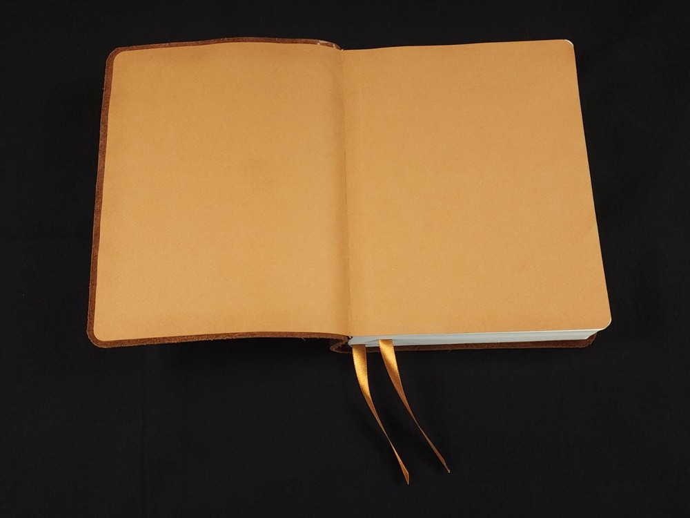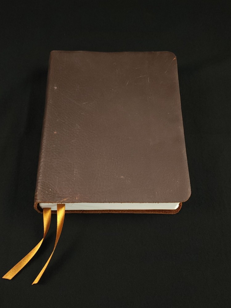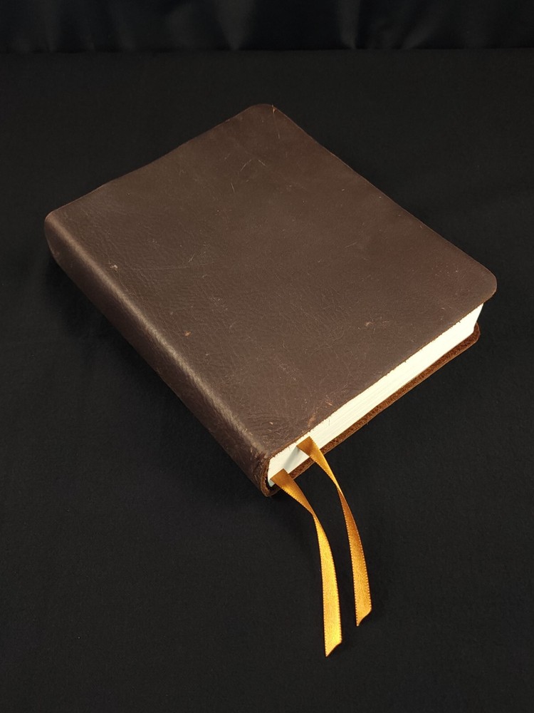 This is one of the most beautiful Bibles I HAVE. EVER. SEEN. It was done to my specifications. The tan goatskin is very beautiful and very thick- not too floppy and not too stiff. I think this leather will outlive live me. Because it is so thick, I do have a bit of a concern that the glue might eventually undo, but the perimeter stitching is very thick and strong, and well done, so I don't think I'll have any major issues. Minor glue issue in the map section- but I truly love it overall.