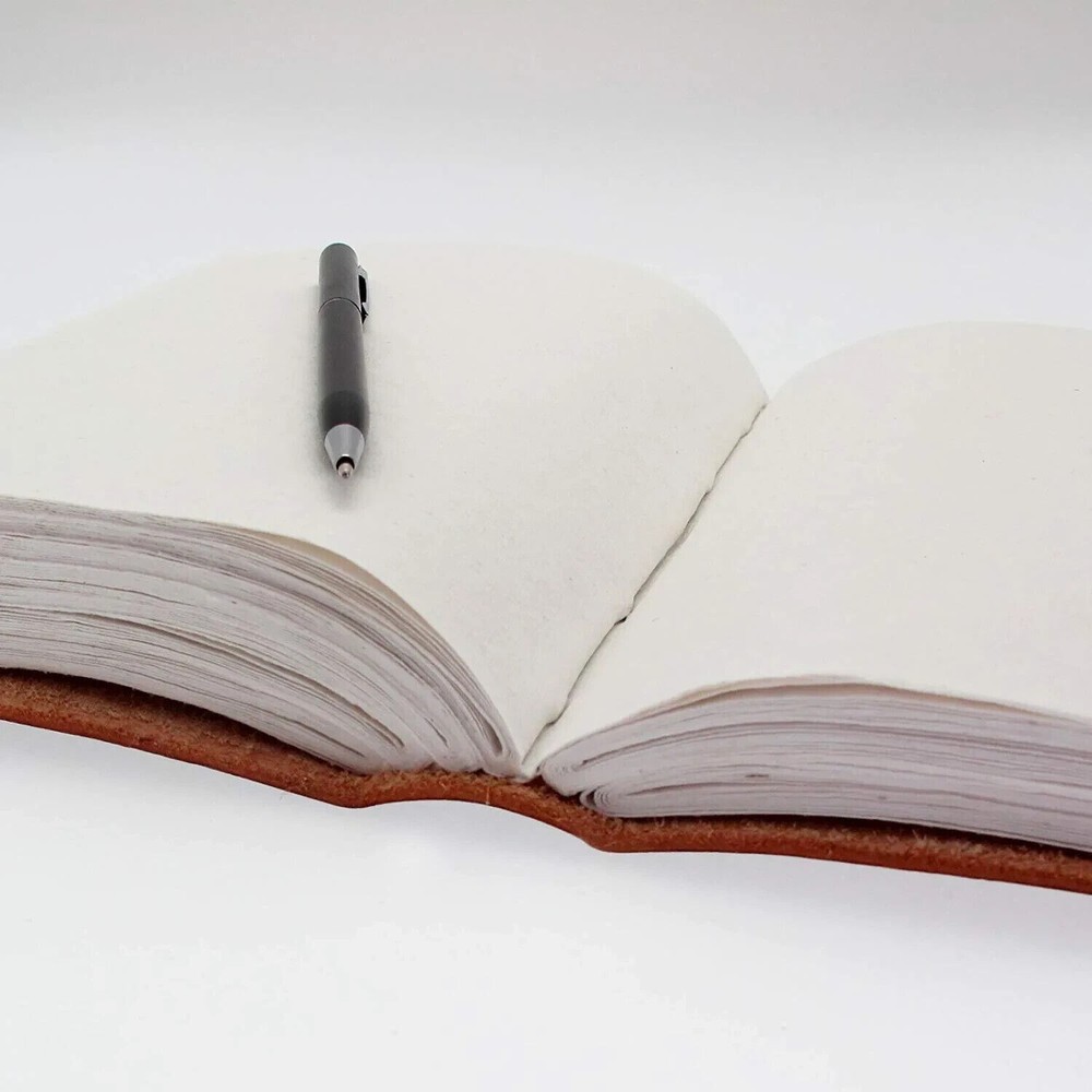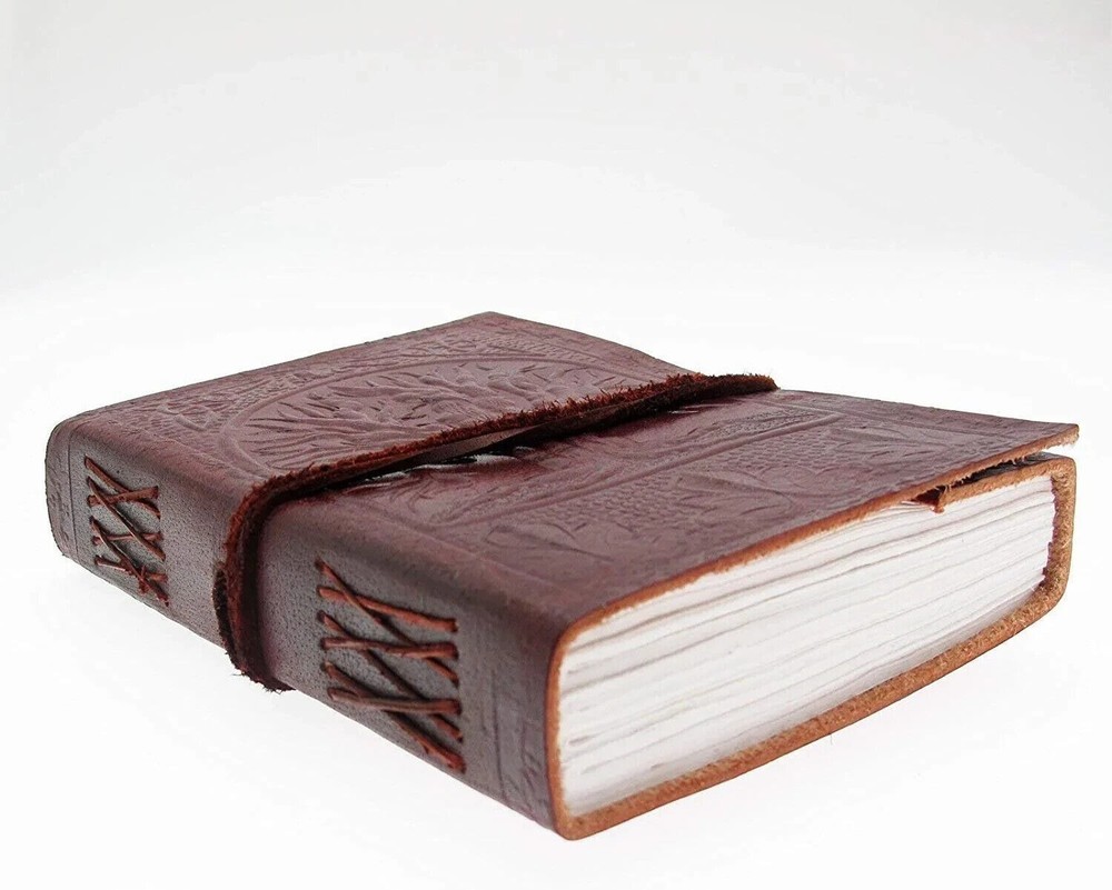 GENUINE DURABLE LEATHER :- Soft & Supple Designer Dark Brown Genuine Leather with a real leather scent. Naturally tanned with special oil, a special keepsake for your thoughts, plans & ideas. ✅ NON BLEEDING ENVIRONMENTAL FRIENDLY COTTON UNLINED HANDMADE PAPER :-Paper is produced using Cotton Bio-Mass and is also acid free. Any kind of pen and pencil can be used on this paper. 200 Pages (counting both sides). ✅ PERFECT SIZE FOR MANY USES :- Available in Two Size's, easy for handwriting, drawing or sketching and compact enough for carrying in your bag. Ideal for alternative Artists, Travelling, Business, Teen Journals, Poetry Work, Journalists, Food Planner, Scrapbook etc. ✅ HANDMADE AND TRADITIONAL CRAFTSMANSHIP:- Shri Krishna Handmade Craft is proud to bring more than 100 years’ experience of traditional Indian craftsmanship. Providing support to many Artists. ✅ VINTAGE AND ANTIQUE APPEARANCE :- Designed to stand out from the crowd. Hand cut asymmetric flap and cover with handmade paper. The leather wrap around strap effectively keeps your journal closed and also acts as a handy bookmark. This old-fashioned leather has an amazing smell! Size 10by13 Inches 10X13 inch