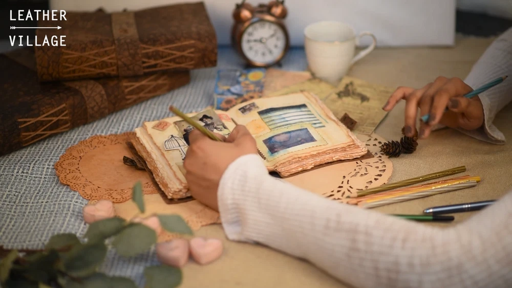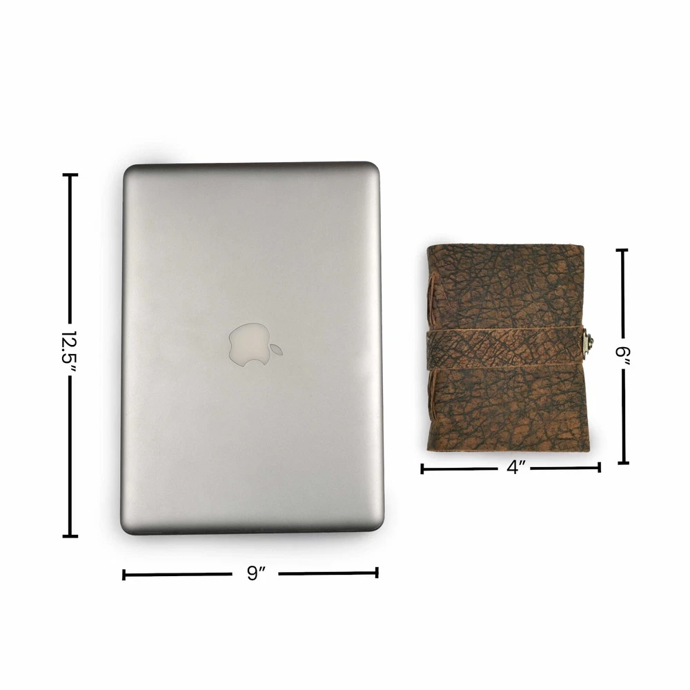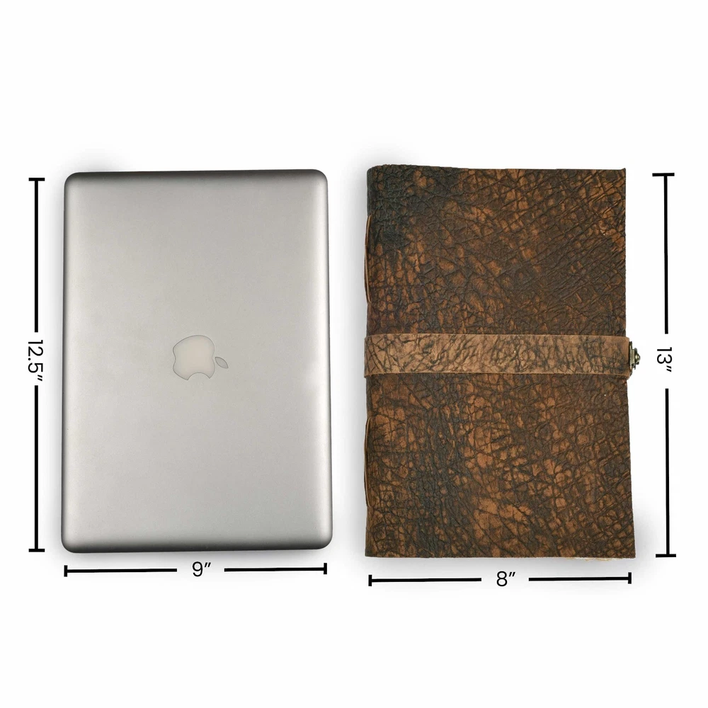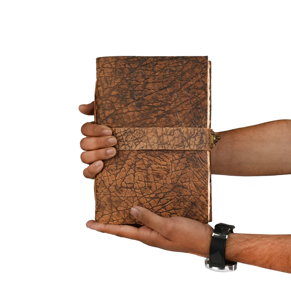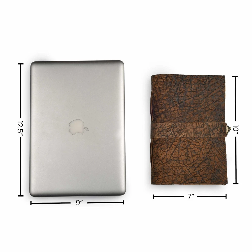 About this item VINTAGE LEATHER JOURNAL: A Perfect Journal for Women and Men by Leather Village. This Vintage Journal is Made from Genuine Buffalo Leather which is naturally tanned with oils and is chrome free. As these Daily Journals are made with genuine Cruelty free leather so each vary in look and shade producing a unique item. TEXTURE JOURNAL WITH STURDY BINDING: Belt Wrap around closure with Antique Bras lock to keep the papers of the journal safe when not being used. A sturdy hand stitched binding to make sure that no paper comes out loose. WATERCOLOR PAPER: This leather Sketchbook comes with handmade deckle edges paper which is made from recycled cotton waste these old Paper are No Bleed Scrapbook Paper. The Mixed Media Sketchbook is Suitable for Writing, Watercolor, Acrylic Colors, Pastel Color and all Dry & Wet Mediums. Use it like Sketch Pad, Watercolor Sketchbook etc. PERFECT GIFT: This vintage-inspired journal serves as an exquisite and timeless gift suitable for a diverse range of recipients, including women, men, teen girls, boys, and cherished grandparents. A lovely treat for your loved ones for an anniversary, birthday or graduation present, or for someone starting a new adventure. LEATHER VILLAGE PROMISE: - Leather Village Leather Bound Journal comes with the Trust and promise of Purity of craftsmanship with each Writing Journal. Product Description: Leather Village Handcrafted Leather Bound Journal Genuine Leather : Crafted by artisans with over 20 years of experience, Leather Village presents a vintage leather journal that is not just a notebook but a legacy. Our journal, bound in premium, cruelty-free water buffalo leather, offers a touch of luxury and durability. The leather, treated in the crazy horse style, gains a unique distressed look over time, enhancing its vintage appeal. Unique Vintage Paper : It makes your Journal looks like it was pulled from history. The Old paper looks and feels like a thousand years old and is a treat to write on. The paper is acid-free and pH neutral therefore is a timeless piece of art. DIMENSION : 7"X5"X1", 10''X'7''X1'', 13''X8''X1'' LEATHER : Buff Leather PAPER : 100 Pages (200 Both side counting), Vintage/Antique Paper BINDING: Hand-Stitched with leather cord CARE : Slightly wipe dry with a tissue or rub in a circular motion to lessen the scratch if you scratch the cover CLOSURE : Lock closure to keep paper safe. CAUTION : Do not use hard eraser on paper Book of Shadow Blank Journal Excellence, Creative, Craftsmanship The LEATHER VILLAGE Vintage Leather journal offers a beautiful writing experience, is a delight to your senses with its luxurious feel, its' craftsmanship and its' intense leather scent. You will be as proud to own your vintage journal as we have been to make it! Why Choose Leather Village Journals ? Old World Unique Gift Beautiful addiction that unlocks the power of your creativity and inspires you to manifest your dreams. Each LEATHER VILLAGE leather journal and notebook draws on our craftsmen roots, Built with trust, unbeatable quality, lasting and durable. More than just a blank book these vintage journals becomes an extension of yourself, a companion to fill with all your journey. Create your Own Masterpiece We all have the potential to create a story. Each story will live on with LEATHER VILLAGE Journals. An Old-world Charm meets modern practicality in this leather bound journal secured with a leather tie. It's perfect for recording ideas, anecdotes, lessons learned, daily events of fond memories. So make writing your daily Habit to give yourself clarity. Leather Village Quality Leather Village prides itself on making products from the highest quality materials with attention to detail. We stand behind our products regardless of what happens, we stay with you. Because Life Isn't Simply Black & White Colors are everywhere, and color preferences are deeply personal. Equally important as selecting the Journal, just the right color to make that piece yours. At LEATHER VILLAGE we try to give the largest range of color options which is nowhere available on any other Journal store online. To ensure you can find not only a color you love, but the shade and sheen to create your ideal look. We keep on increasing our varieties. Want a bold green to create an eye-catching travel journal? Or a tan that will accommodate seasonal accessory changes? Look no further than LEATHER VILLAGE offering of luxury leather journals. Natural Beauty, Natural Variations. Our Old- world vintage journals are:- Made from Full-grain water buffalo leather Cruelty free Leather extracted from Dead animals. Naturally Tanned and which are dyed using natural color and oil. Considered the highest quality leather, these hides are also the least touched by human hands – retaining much of their texture and markings that occur naturally during life. Because each hide is unique, it’s possible to find slight variations in color among Notebooks which make them ONE OF A KIND.
