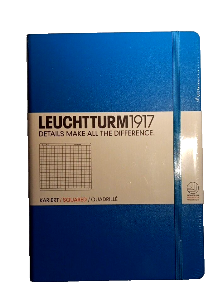 Welcome on Visiting KindredStuff About this Item: NEW - Notebook for Journaling | Azure | Squared | Gift | 8.27 x 5.7 in - A5 | Fountain Pen Friendly This Azure Squared Leuchtturm1917 notebook is perfect for anyone who loves to jot down their thoughts and ideas. With a Hardcover and Squared pages, this notebook is great for use as a journal, planner, or just for note-taking. The faux leather cover material gives it a sleek and professional look. This deliberately designed notebook features: 249 numbered pages & Blank table of contents: great for organizing and quick lookup 8 detachable sheets: such a convenience for exchanging contact info Expandable pocket: perfect for storing business card Page marker and elastic enclosure band: remind you where you left off & keep all pages intact...won't Gone with the Wind Thread bound book opens flat: provides comfortable writing experience Sticker for labelling and archiving: a line of colorful labelled notebook...Oh, Heavens Dimensions: 8.27 x 5.7 in - great for work journal Ink proof paper: fountain pen friendly - tested with WATERMAN Encre Bleu Mystere Acid free paper: long lasting paper. Trust worthy to pass along your precious thought and memory for generations Whether used for personal or professional purposes, this notebook is sure to be a valuable tool for anyone looking to stay organized, stylish and creative. Return Policy All Leuchtturm1917 notebooks from KindredStuff are shipped in their original plastic wrap. In case a item is not as described, we would happy to retrieve the item and work with you to resolve the issue. Otherwise, we do not do return at this time. Stay tuned! Communication Policy We value what you would like to share with us. We will strive to answer your questions, resolve your concerns through eBay message in a timely manner. eBay message is the primary and preferred mean of communication at KindredStuff. We wouldn't be able to respond through other means of communication. Payment Policy We appreciate for your paym ents made through eBay. We work around the clock to prepare and ship your order as soon as we receiving the green light from eBay. ------------------------------------------------------------------------------- Last but not the least, Enjoy & Thank you!