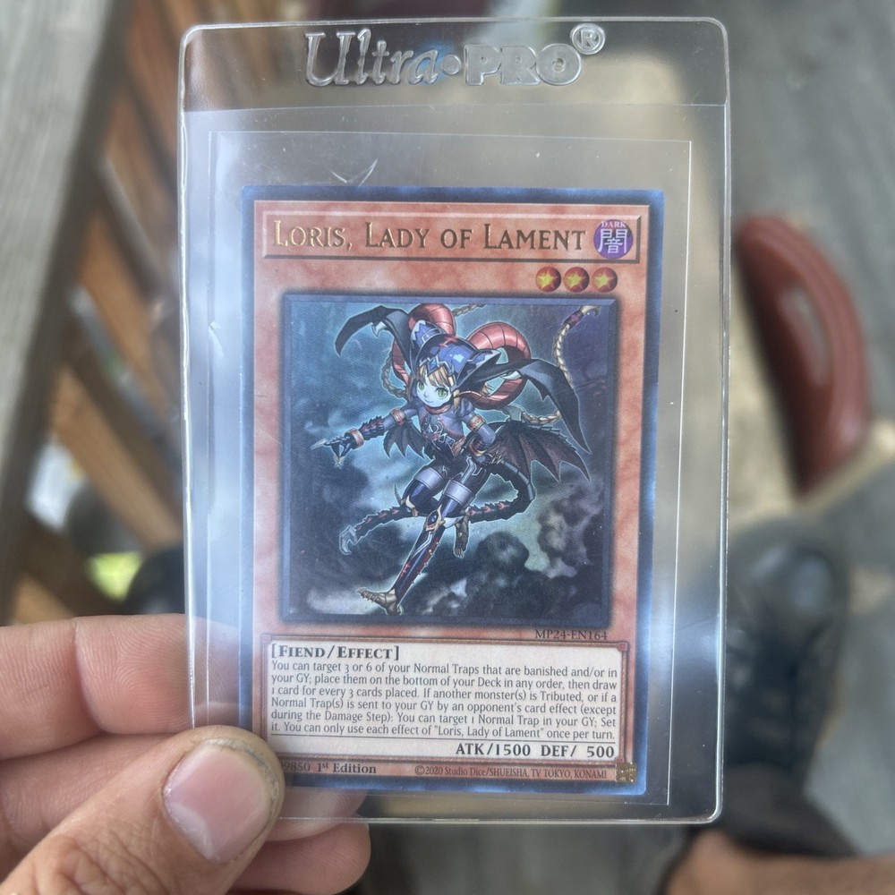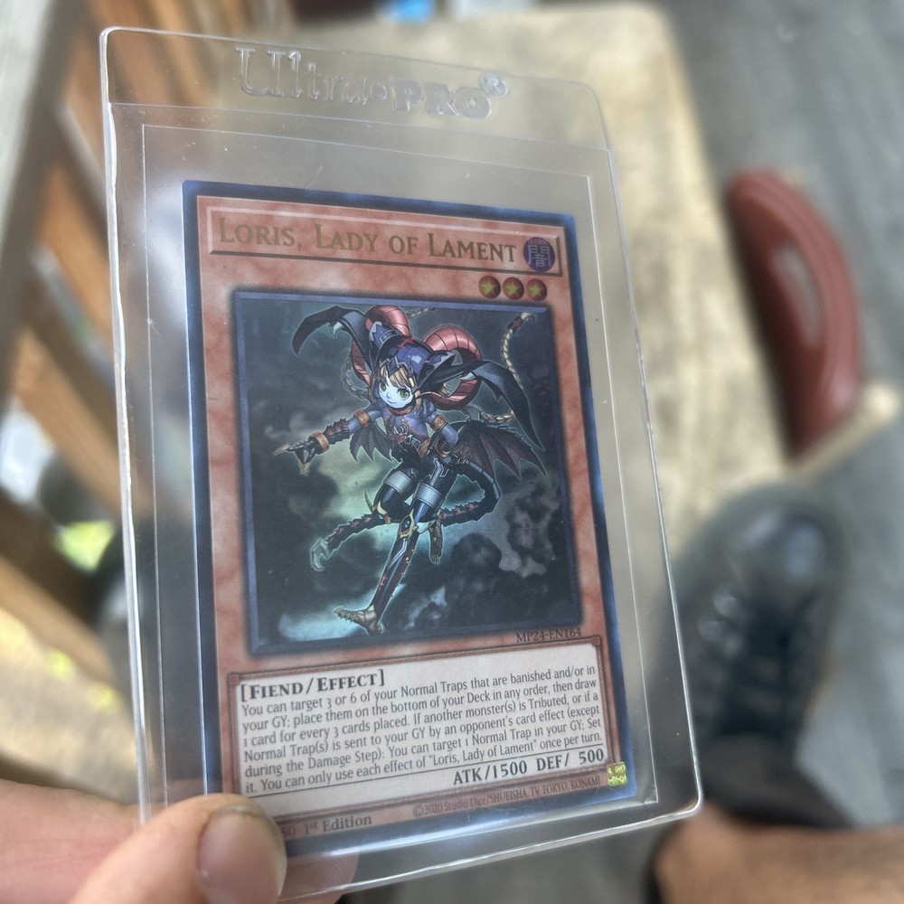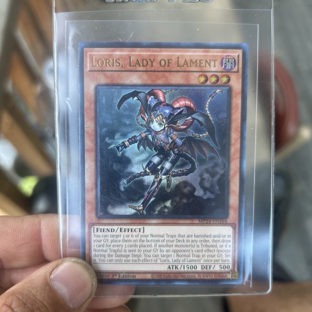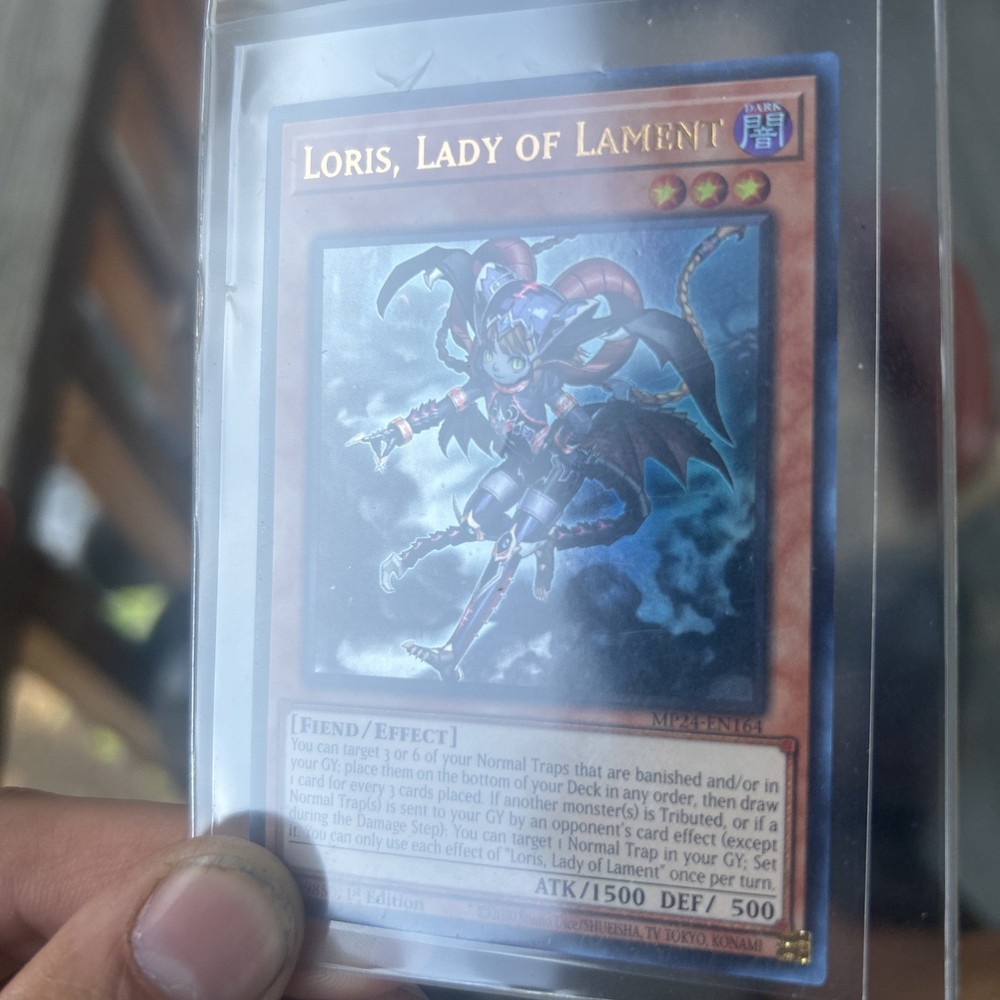 The Loris, Lady of Lament MP24-EN164 card is a collectible individual card from the Yu-Gi-Oh! TCG, specifically from the 25th Anniversary Tin: Dueling Mirrors set. This dark attribute card features a fiend type creature with 500 defense and 1500 attack power. Being an ultra rare 1st edition card manufactured by Konami, it is an English language effect card that will surely be a valuable addition to any collector's arsenal.