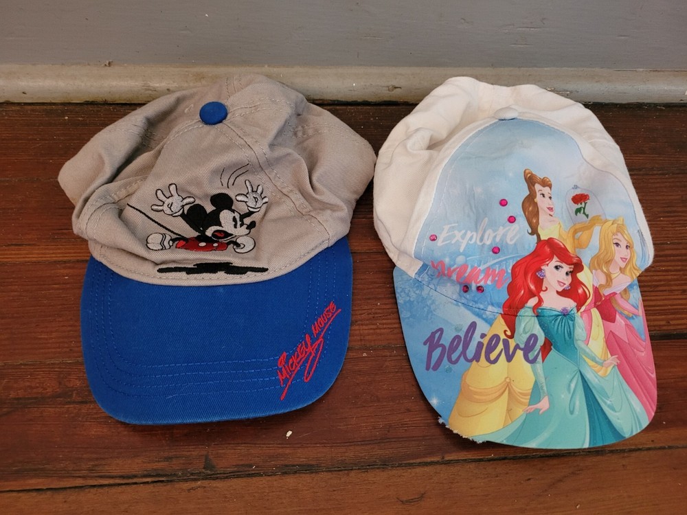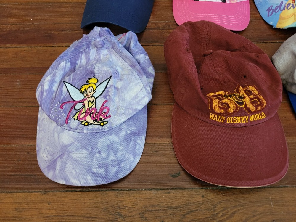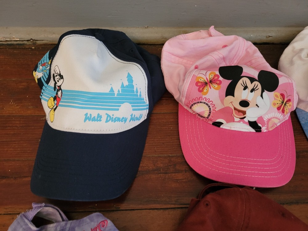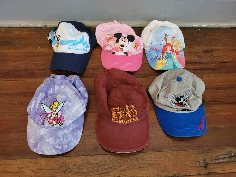 6 total hats. All Disney brand, all youth sizes. All character hats. Pre owned but in good condition. No stains or holes. Small tear in the bill of 1 hat (see last picture). See pictures for overall c...