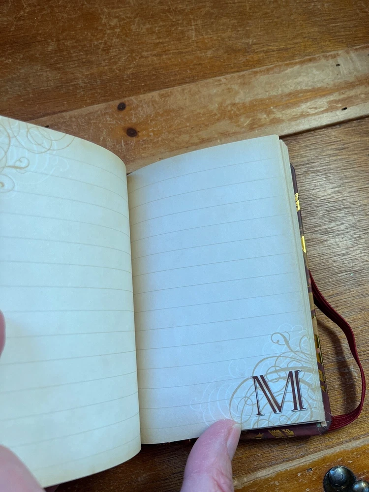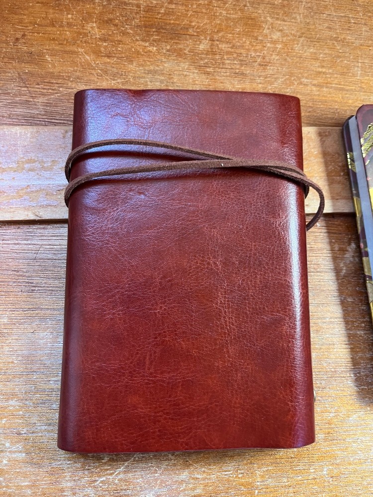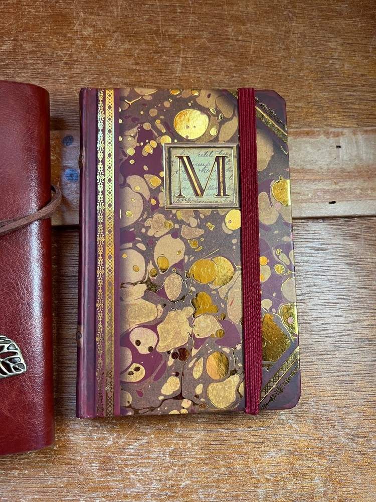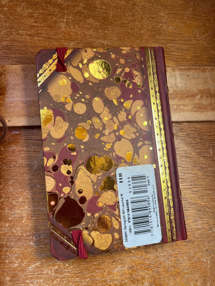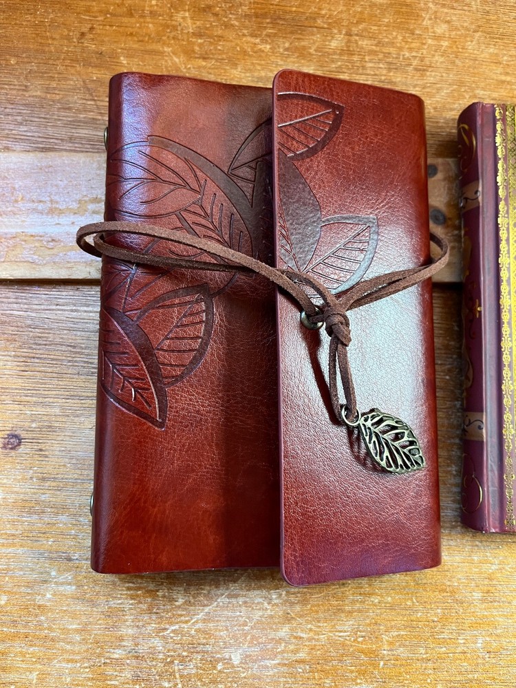 Lot of 2 Small Brown Leather w Embossed Leaves & Gilt & Brown Mini Monogram M Hardcover Journal - the leather bonded cover is about 4 x 5.5 inches with a spiral bound batch of tan plain paper - the brown & Gilt hardcover one has lined paper and is about 5.25 x 3.5 inches - VERY GOOD condition - minor edge wear on hardcover one - (Location - Blue Book Rubbermaid #14) ************************************************************************************************************************************************************************************************************************* COMBINED SHIPPING: 1 win = price listed; 2 wins = 50% of lowest listed shipping price; 3 wins = additional $1.00; 4 WINS (in 7 days) = no additional charge on entire order; Combined Shipping includes AUCTION wins as well as STORE wins (Buy It Now). FREE shipping on combined shipping orders exceeding $100.00 and 4 wins of jewelry only or books only. I will ship worldwide, however, additional shipping charges will apply. I will always attempt to use the cheapest route possible. If you need faster shipping, I will work with you, but you will need to pay the extra shipping charges. I will only be shipping once/week. BOOKS rated using the following scale: FINE – as new condition NEAR FINE – very minor edgewear or other hardly noticeable defect; gift inscription or previous owner’s name might be present or remainder mark; VERY GOOD – minor edgewear, cornerwear, maybe subtle writing or scribbling; remainder mark might be present; previous owner’s name or gift inscription might be present; subtle creases or wrinkles might be present; one or two very tiny tears; pages might be browning; GOOD – multiple condition issues – edgewear, cornerwear, writing or scribbling not affecting the text, creases or winkles, small tears, browning pages; FAIR – many condition problems but still a readable copy POOR – heavy damage but still readable; some books with neat illustrations might be sold with a few pages missing