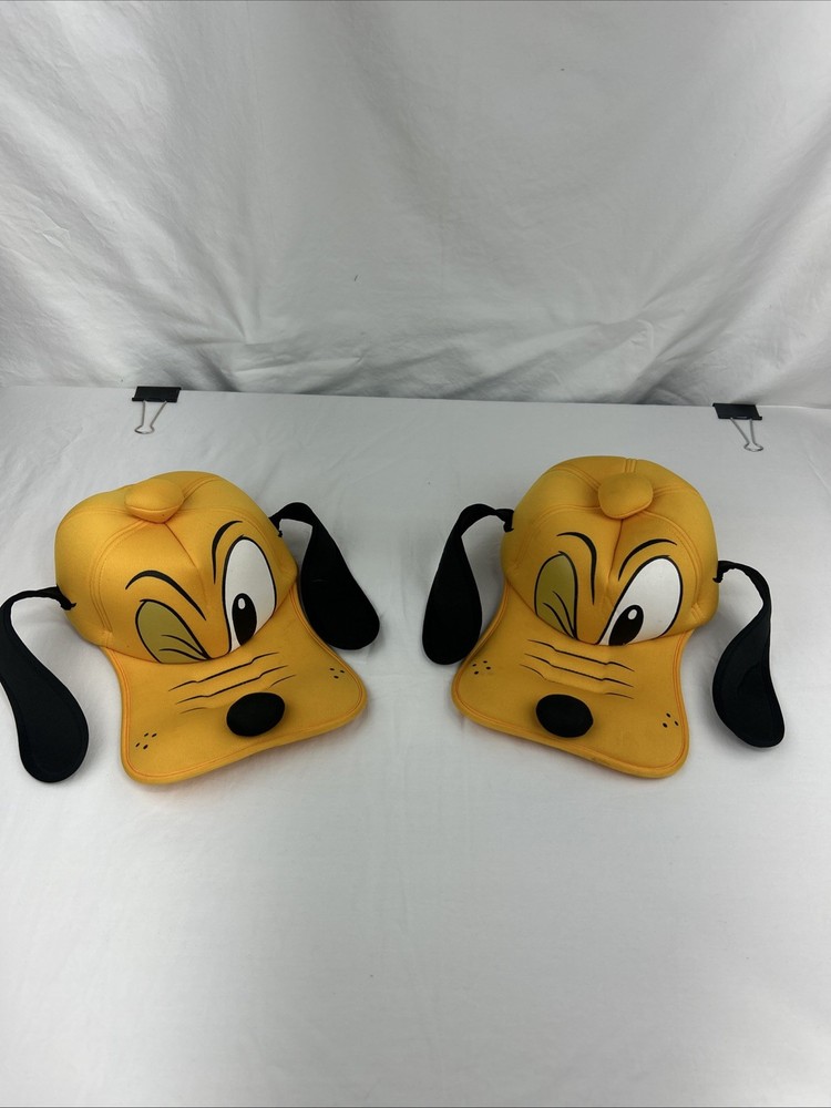 Lot of 2 Pluto hats in overall excellent condition with very little wear, see pics for details. Sold as is, thanks for viewing. Capture the magic of Disney with this charming lot of 2 Walt Disney World 3D Pluto Caps/Hats, each adorned with the beloved character's ears. Designed for adults and one-size-fits-most, these hats are a playful addition to any Disney enthusiast's collection. The vibrant yellow color and detailed 3D Pluto design bring a touch of whimsy to any outfit, making them perfect for park visits or casual wear. Crafted with care in Taiwan, these hats showcase the quality and imagination that Disney is known for. They are unisex, suitable for anyone who wishes to don the iconic Pluto ears. Whether you're a collector or looking for a fun Disney accessory, these hats are sure to delight fans of all ages.