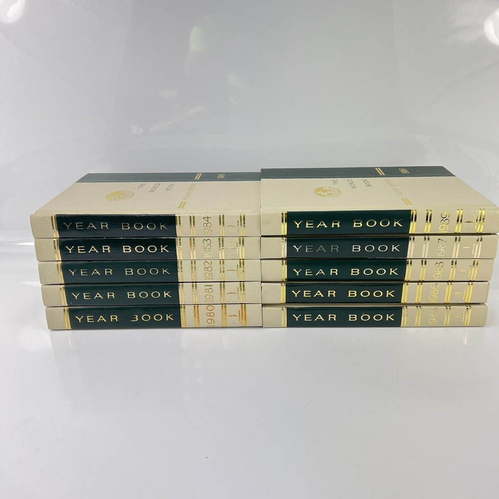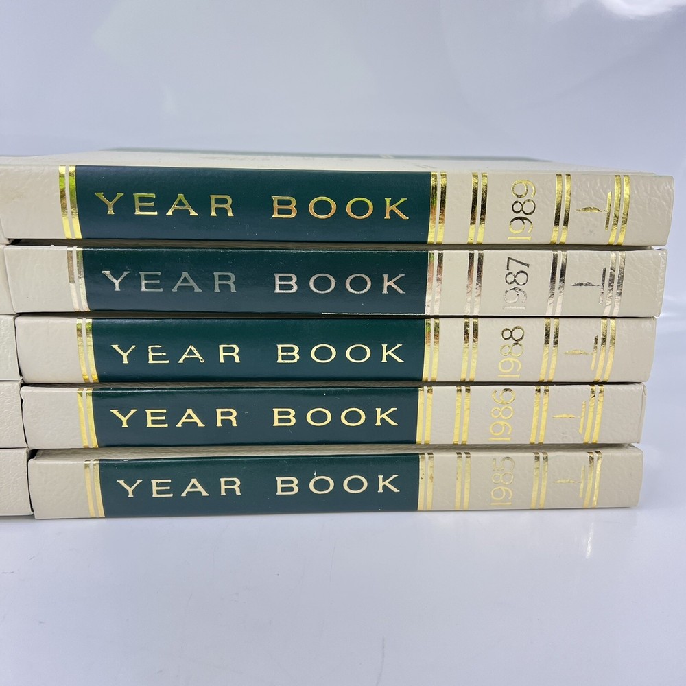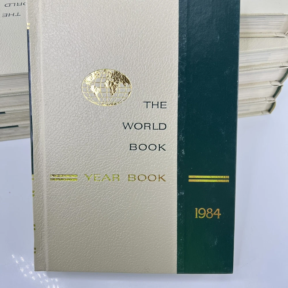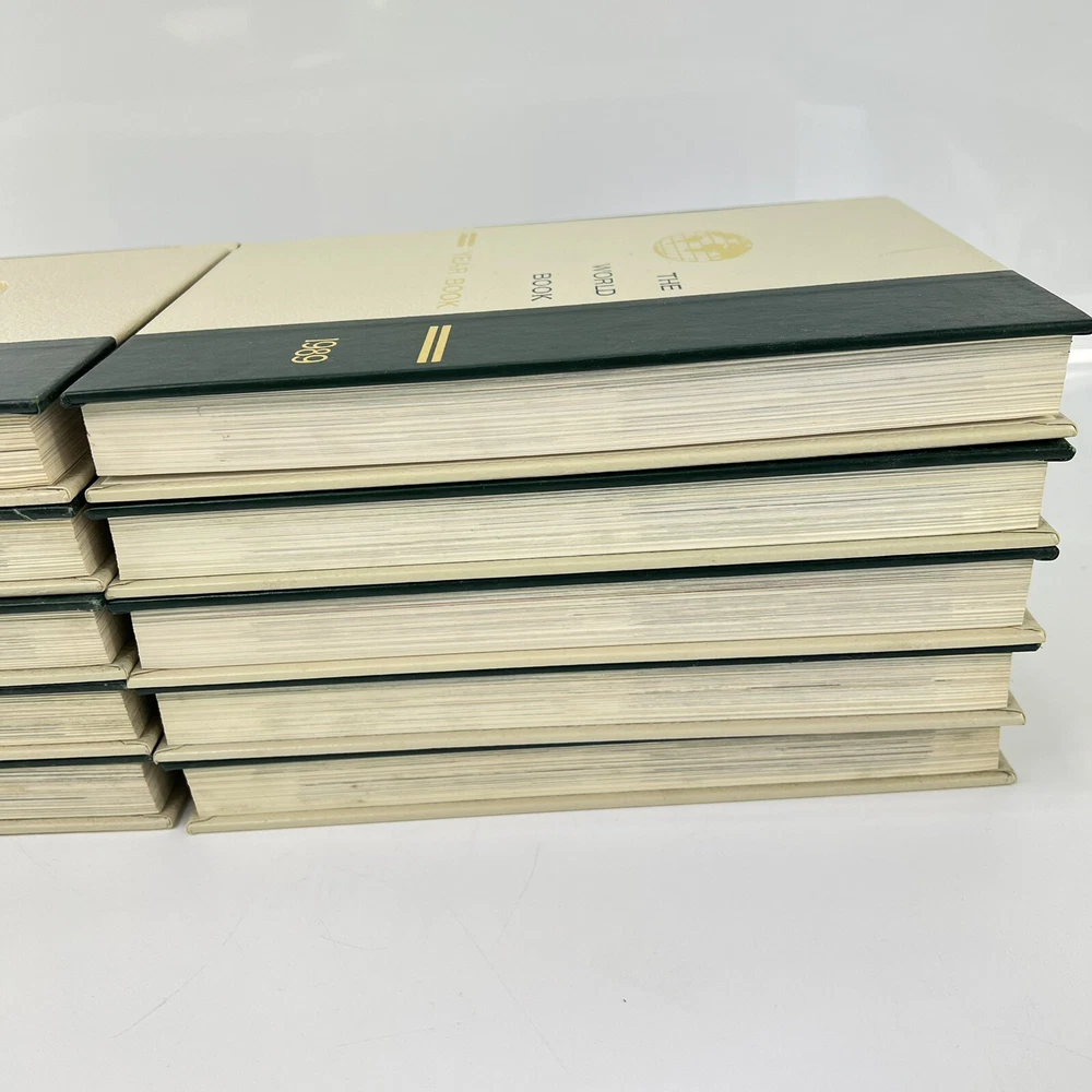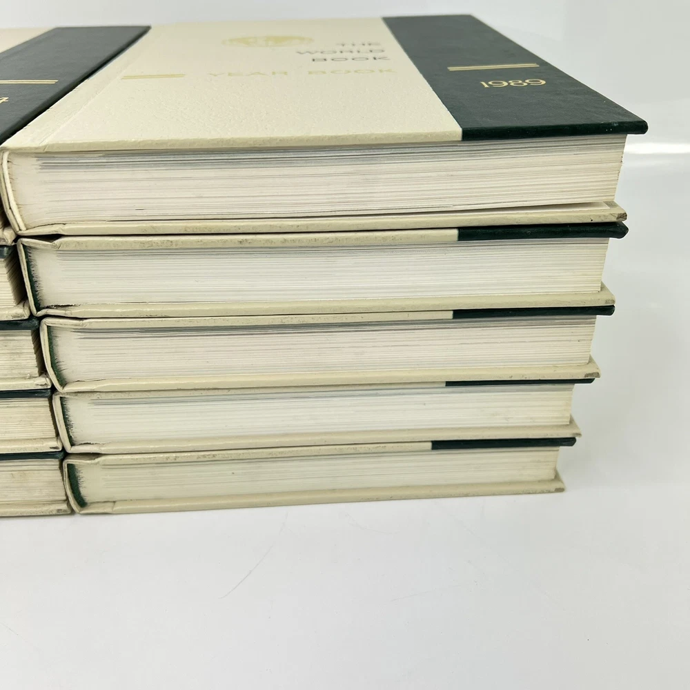 Lot of 24 1966-1989 The World Book Encyclopedia Year Books Green Gold & Cream There are stains, wear, rips, and a musty smell to them. *Sales of items will only include what is pictured. *Ask any questions before purchase to avoid problems. *Feedback on items purchased and experience are much appreciated. *If there are problems, please message us before getting EBAY involved. We're confident we'll have solutions.