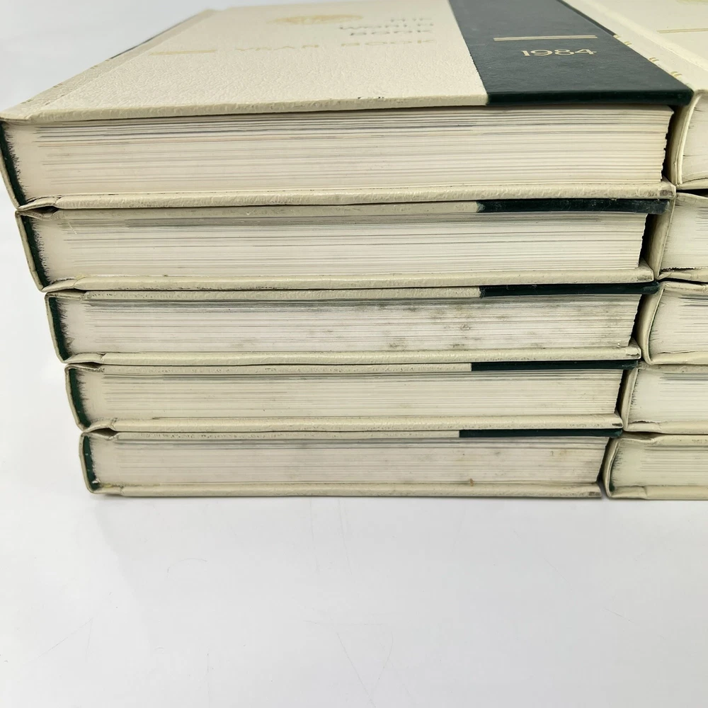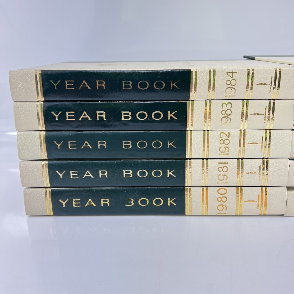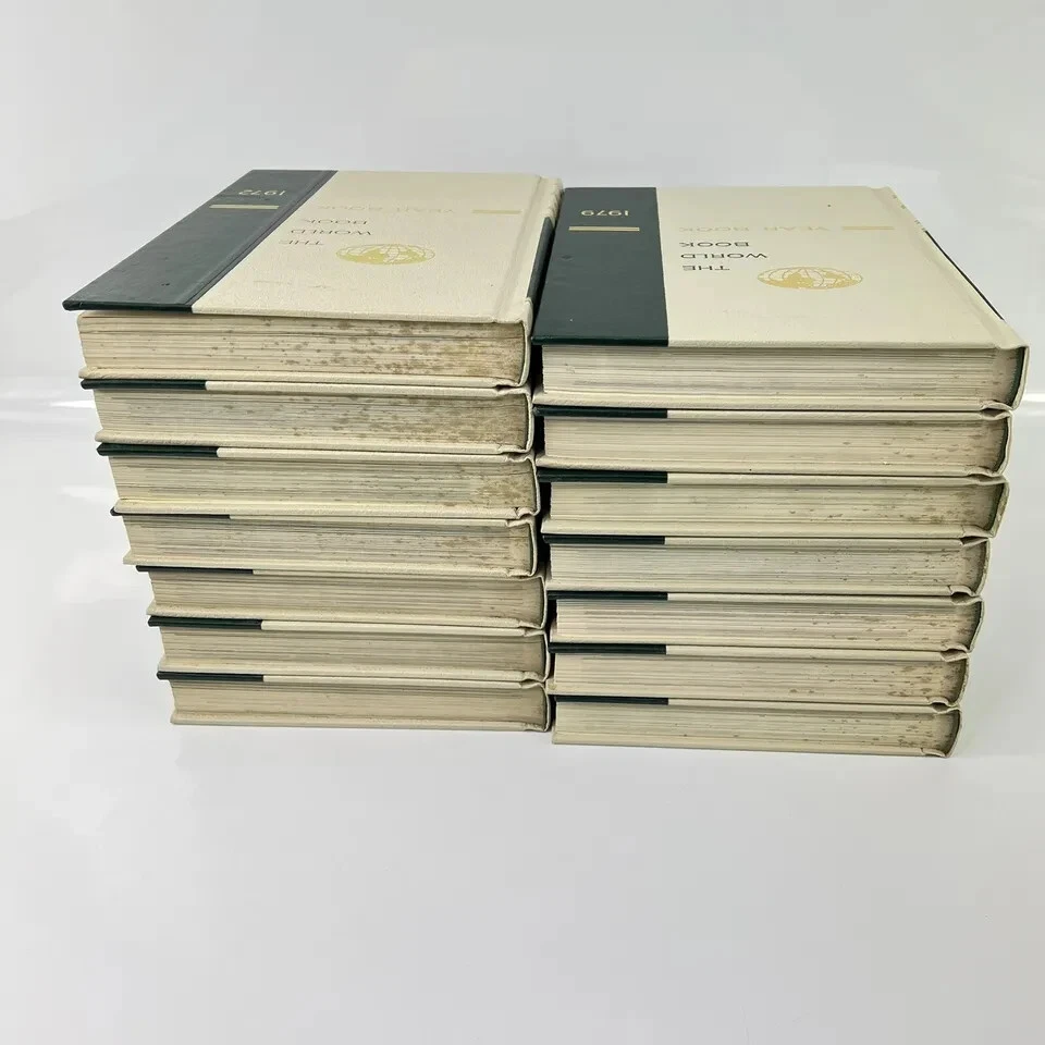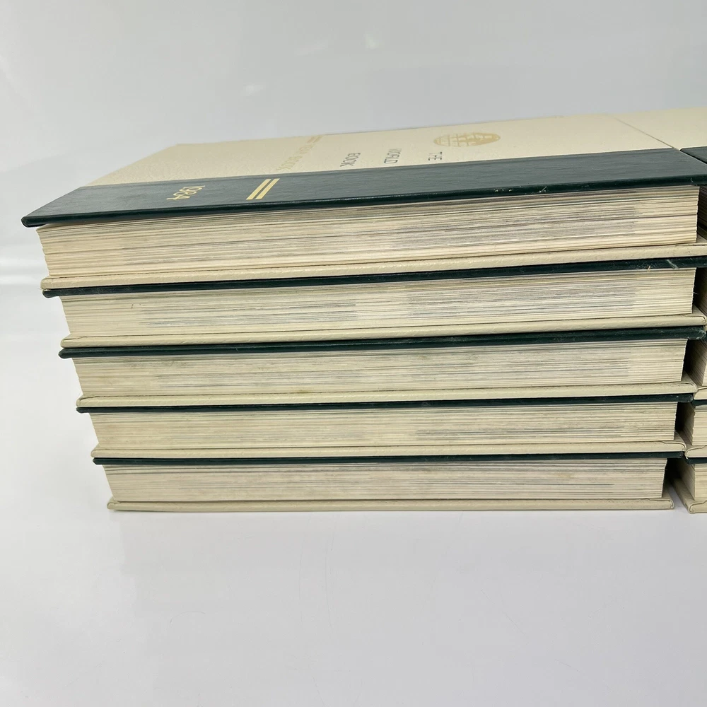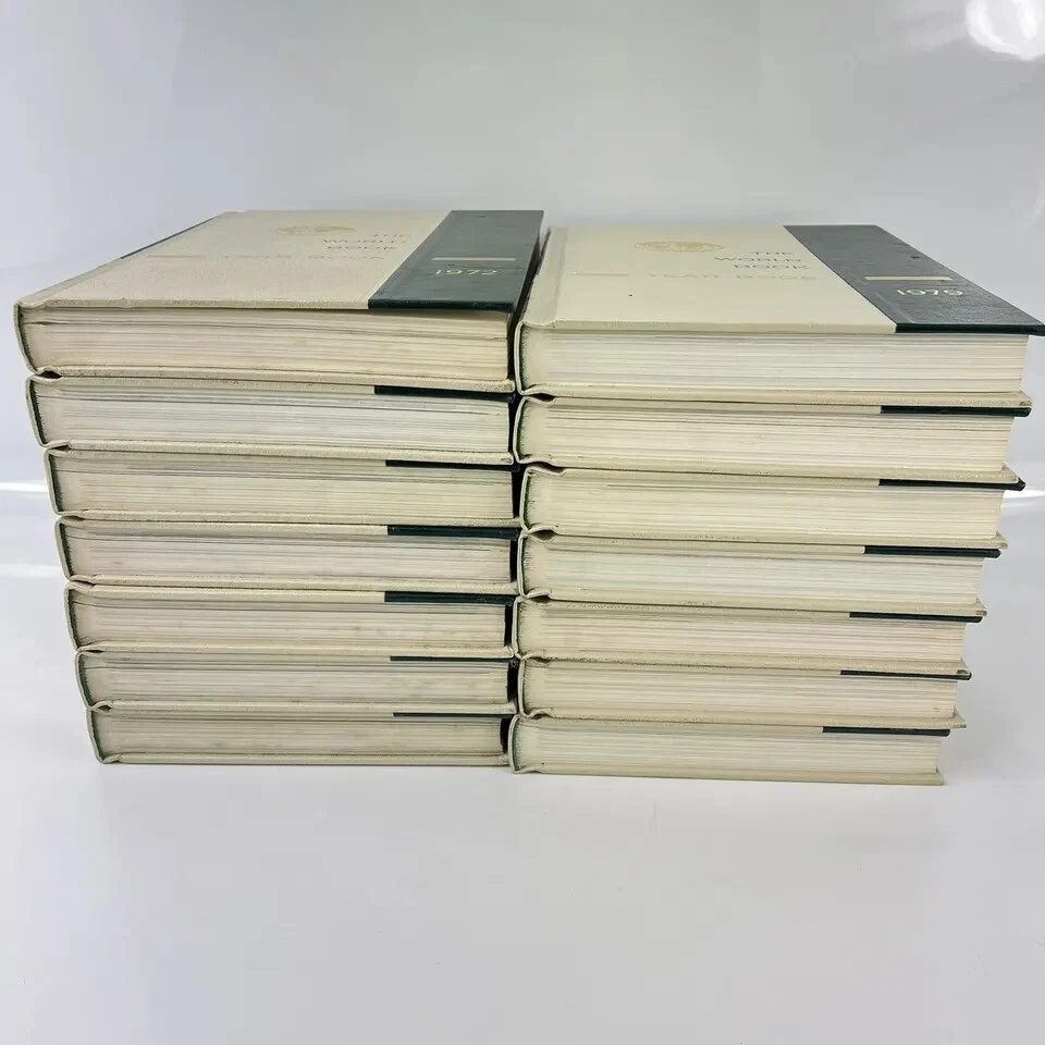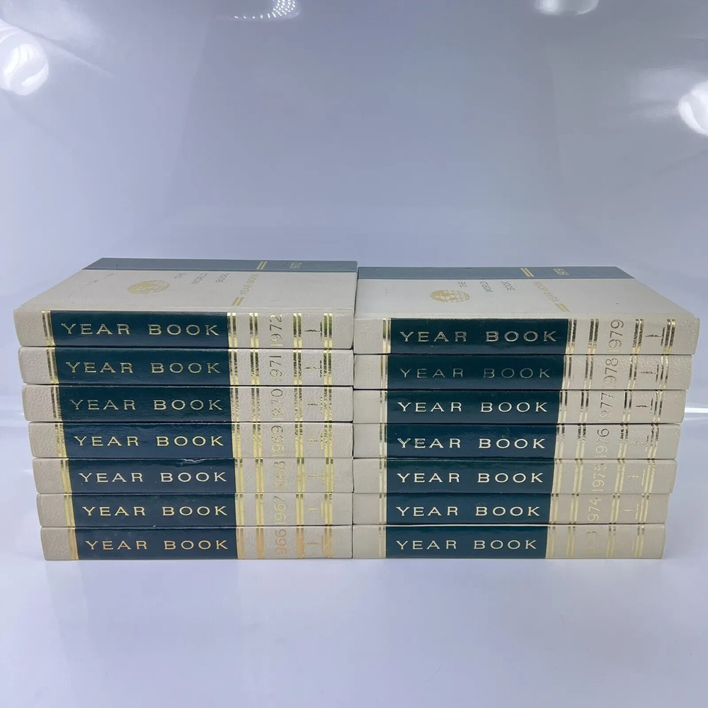Lot of 24 1966-1989 The World Book Encyclopedia Year Books Green Gold & Cream There are stains, wear, rips, and a musty smell to them. *Sales of items will only include what is pictured. *Ask any questions before purchase to avoid problems. *Feedback on items purchased and experience are much appreciated. *If there are problems, please message us before getting EBAY involved. We're confident we'll have solutions.