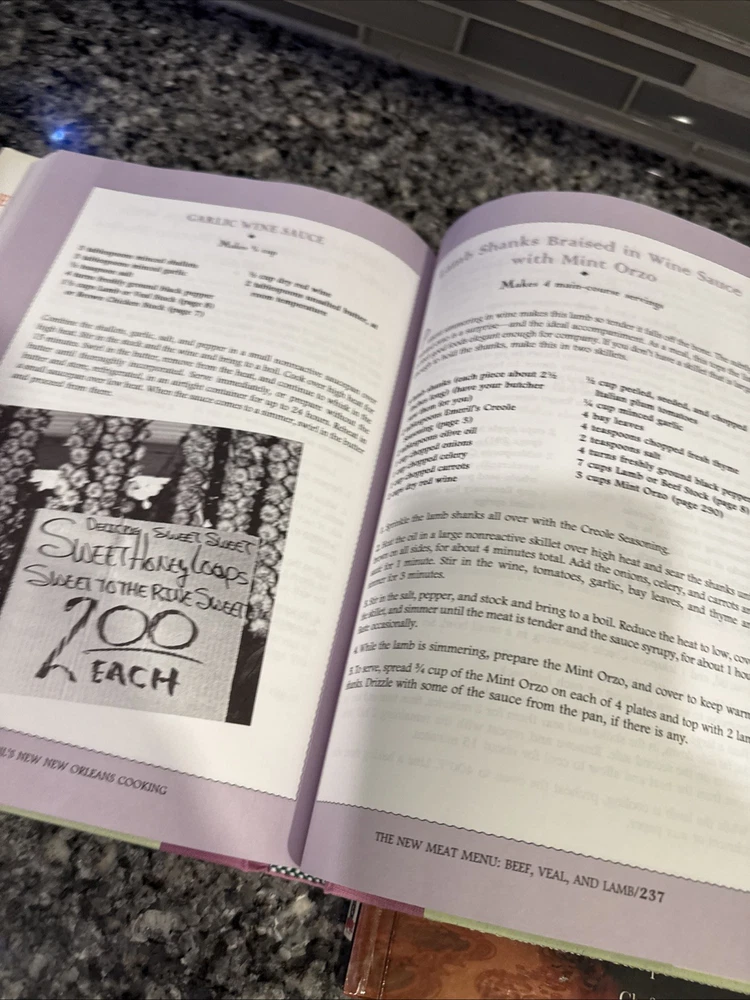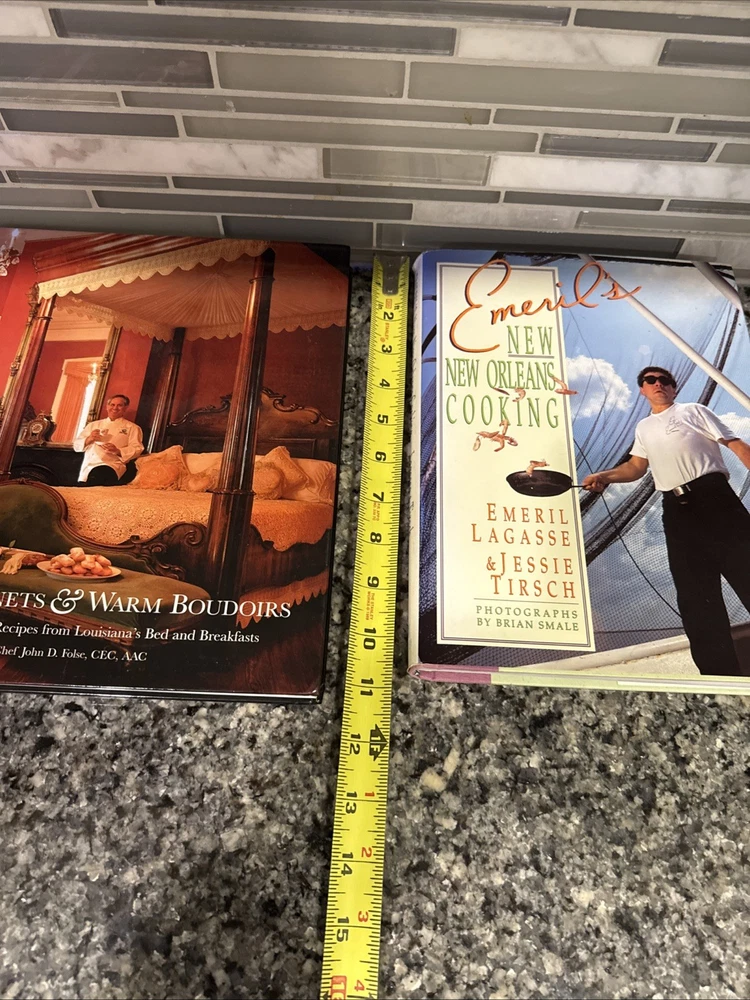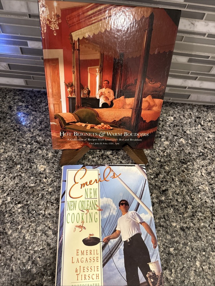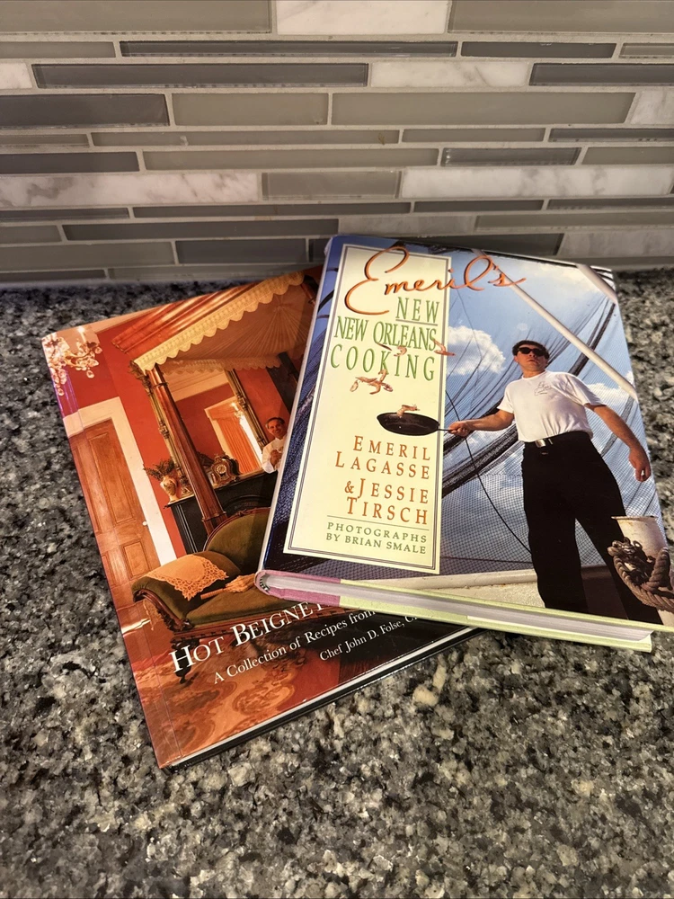eBay Description: Discover the bold flavors and charm of Louisiana cuisine with this two-book hardcover set — both in beautiful, like-new condition: 1. Emeril’s New New Orleans Cooking By Emeril Lagasse & Jessie Tirsch A modern classic that helped launch Emeril’s national fame. Packed with authentic New Orleans dishes, personal stories, and vibrant photography. A must-have for fans of Cajun and Creole cooking. 2. Hot Beignets & Warm Boudoirs By Chef John D. Folse An elegant cookbook featuring regional recipes from Louisiana’s most charming bed & breakfasts. Rich with Southern hospitality and historic charm. Condition: • Both books are like new, clean, and crisp • Minimal to no wear; dust jackets in excellent shape (see photos) • Ideal for collectors, foodies, or kitchen décor Perfect gift for fans of Southern cooking, regional food culture, or lovers of New Orleans.
