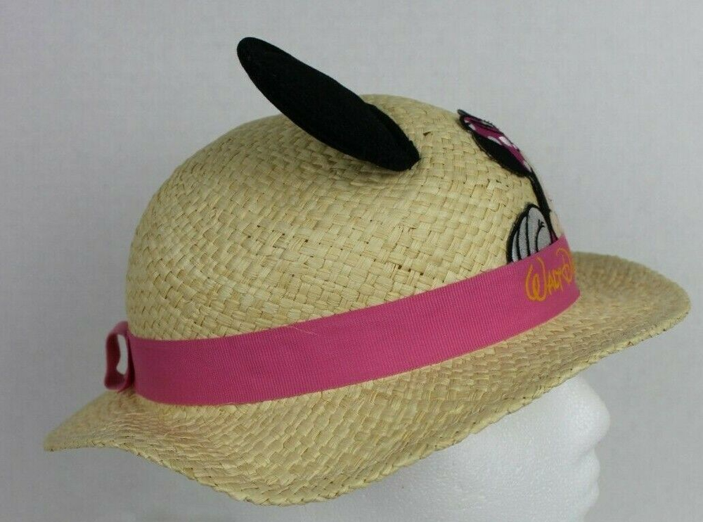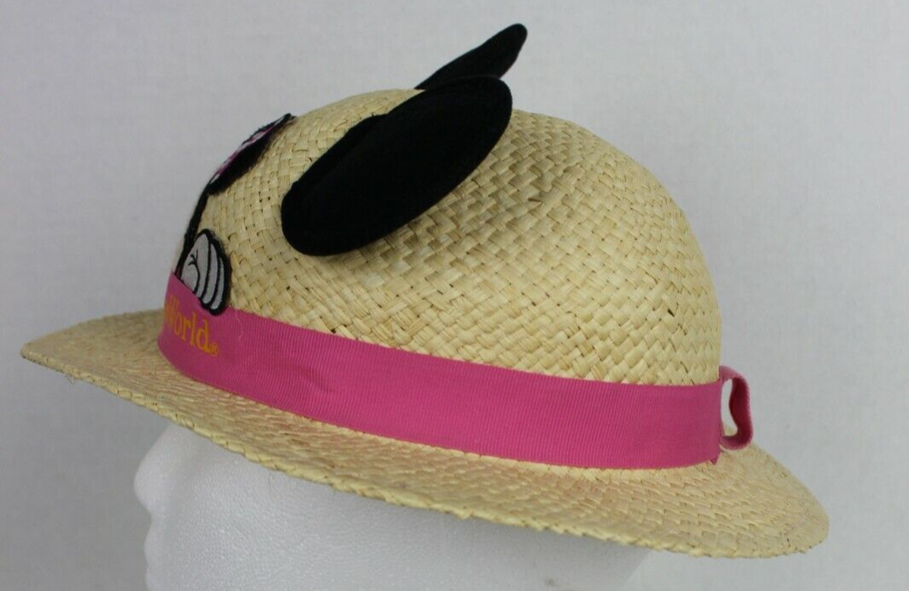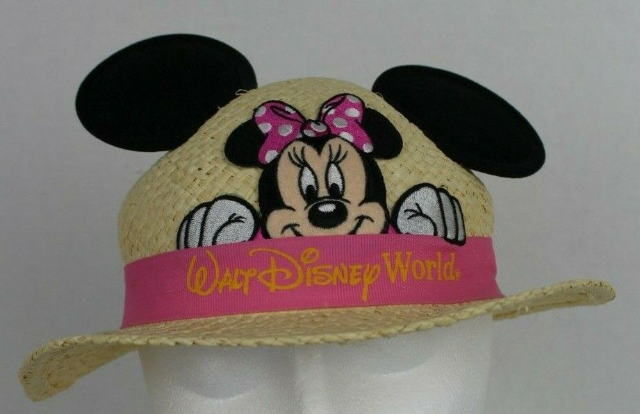 WALT DISNEY WORLD KIDS Minnie Mouse Straw Sun Hat with Mouse Ears Decoration Nice Pre-Owned Condition Size: Child size (head opening measures 7 inches across) Fabric: 100% raffia straw Source: From pet-free, smoke-free, climate-controlled location Photos: Are of actual item you will receive We ship all hats IN BOXES for added protection during transit Please see our store for other fun Disney items. We ship FAST Returns: We accept domestic returns up to 30 days from purchase; buyer is responsible for return shipping costs; original shipping costs are non-refundable. Original shipping will be deducted on any item that was listed with free shipping./PRbrs