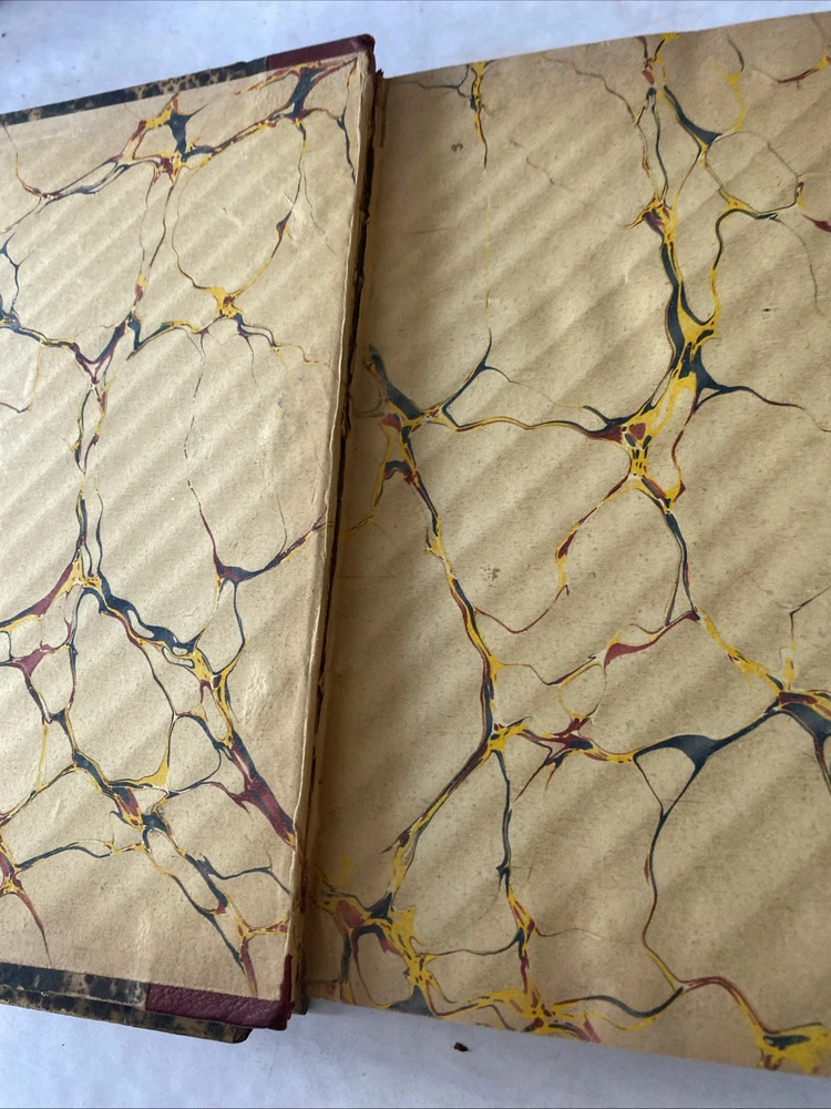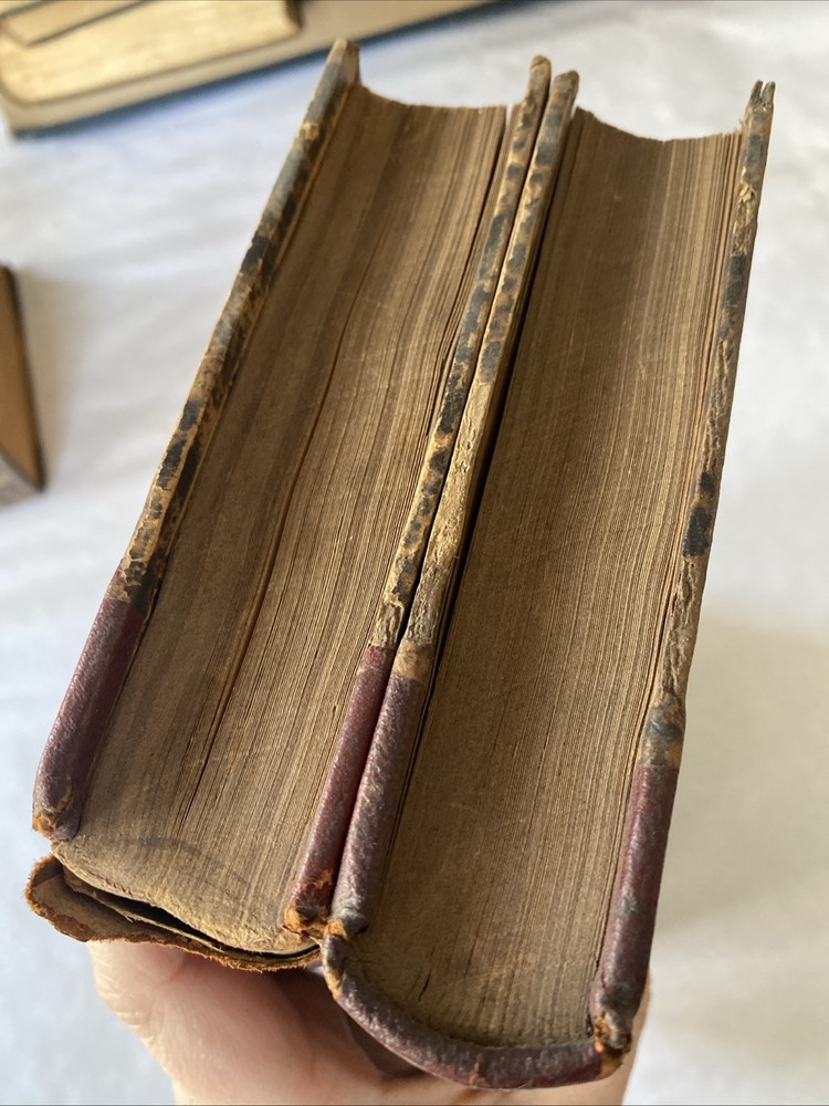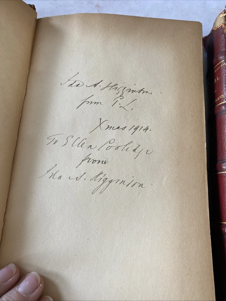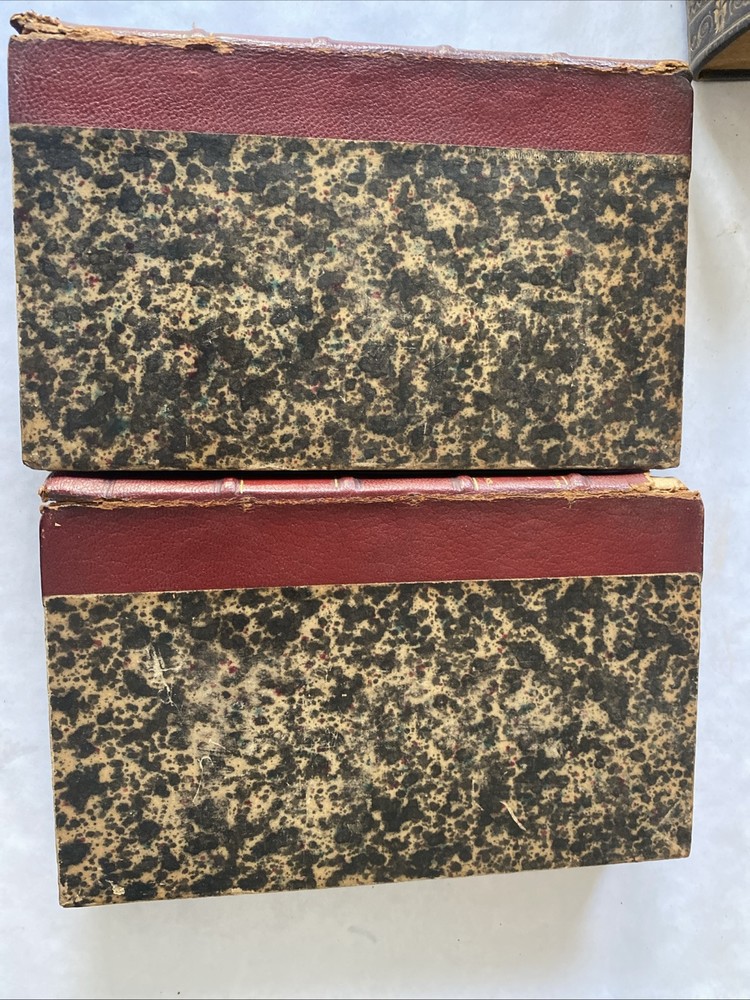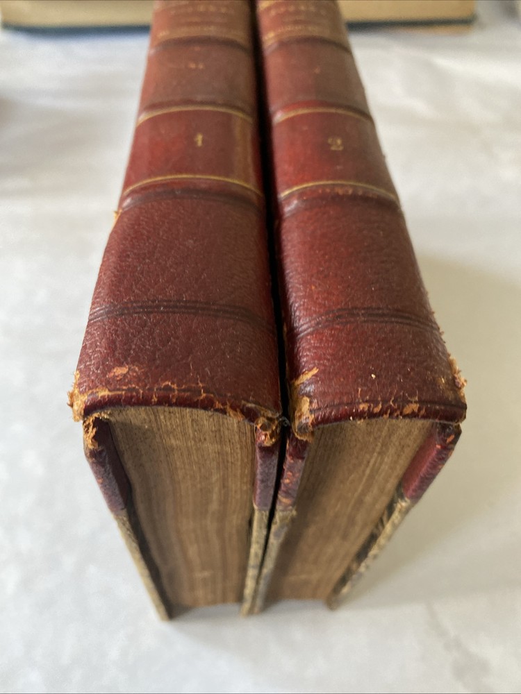 Please take time to look at the pictures so you can see the condition details of this item . One volume is missing part of the top of the spine and cracking in other places. Inscribed by previous owners on the inside.