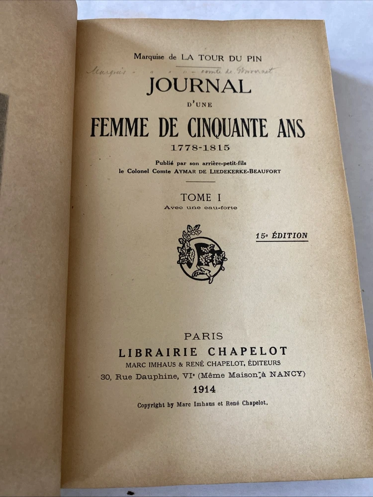 | Special Attributes | Illustrated, Marquise de La Tour Du Pin, French Revolution to the French Empire |