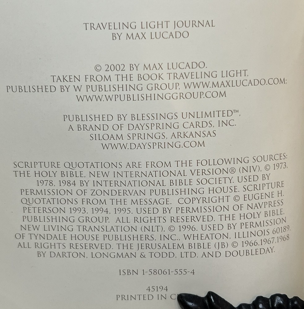 Max Lucado’s Traveling Light Journal -Brand New -Daily Bible Verses -Diary/Journal...