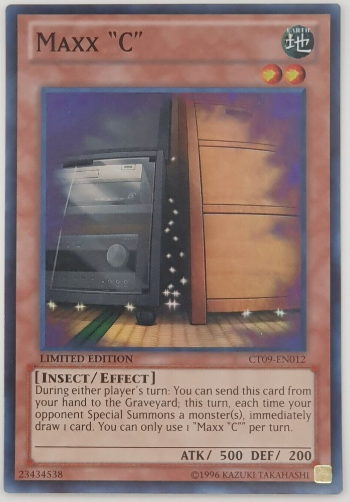 Maxx "C" - CT09-EN012 - Super Rare Yugioh Specific Condition of This Item : Excellent- Near Mint - please see photos. Standard Conditions on all Items: All items sold are described to the best of our ability, as accurate as possible, and with utmost care on our part. However, to avoid any potential oversights, I respectfully request that your review item description and photos, and ask all questions PRIOR TO BIDDING All items are original and have never been altered unless clearly stated otherwise. Satisfaction of all my customers is paramount so please carefully check all photos as they form part of the description- I cannot list each and every blemish on every item-I grade the items and then highlight any MAJOR defects WE APPRECIATE YOUR BUSINESS AND IT IS IMPORTANT TO US TO ACHIEVE 100% CUSTOMER SATISFACTION, THEREFORE PART OF THE TERMS OF THIS SALE ARE THE EXCHANGE OF FEEDBACK ON THE TRANSACTION. FEEDBACK WILL BE LEFT ONCE WE RECEIVE IT - THANK YOU Payment I request that you make same day payment unless agreed to in advance, I accept PayPal or direct bank deposit. Please just ask up front if you are not sure. Return Policy Seller does not accept returns. If the item you received doesn't match the listing description, your purchase may be eligible for eBay Money Back Guarantee if the return request is made within 3 days from delivery. Unit001