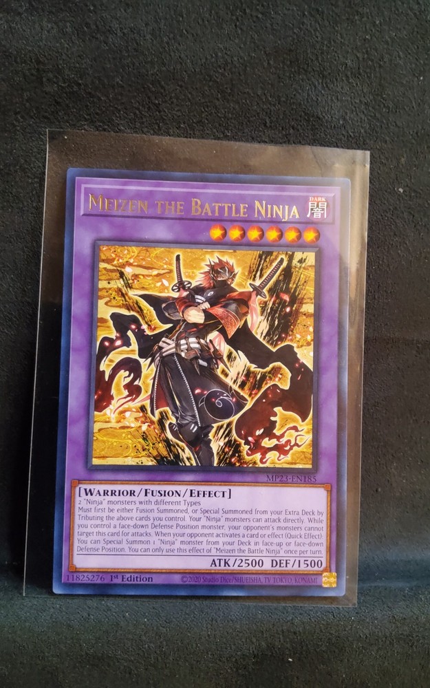 Elevate your Yu-Gi-Oh! TCG collection with the formidable Meizen the Battle Ninja, from the 25th Anniversary Tin: Dueling Heroes Mega Pack. As an Effect Fusion card, Meizen can tip the scales in your favor with its unique abilities and dark attribute, making it a valuable addition to any deck. The card showcases an impressive 2500 attack power and 1500 defense toughness, ready to take on any challenger. Boasting the rarity that players and collectors seek, this English-language card, MP23-EN185, comes straight from Konami as a 1st Edition gem. Whether you're looking to enhance your gameplay or complete a set, Meizen the Battle Ninja stands out with its warrior monster type, ensuring it leaves a lasting impact on the dueling heroes' arena.