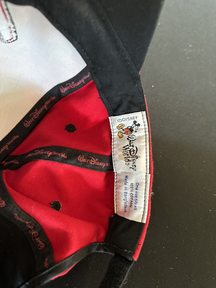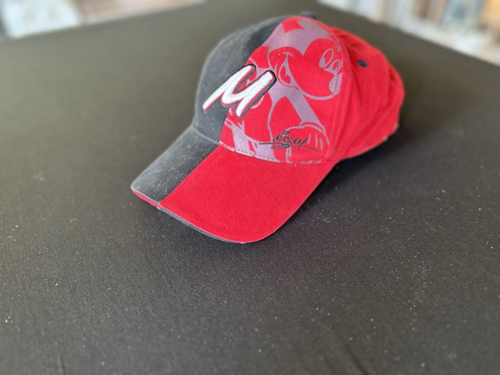 This Mickey M Walt Disney World baseball cap is perfect for any Disney enthusiast! The hat features a bold red and black color scheme with an adjustable strapback for a comfortable fit. The cap is adorned with the iconic Mickey Mouse emblem in colorful detail, adding a touch of whimsy to any outfit. Ideal for men, this pre-owned hat is in great condition and ready to be worn on any adventure. The brand, Walt Disney World, is known for its quality and attention to detail, making this hat a must-have for any collector.