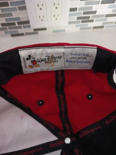 Mickey M Walt Disney World Black & Red Adjustable Strapback Cap Hat Adult Unisex....