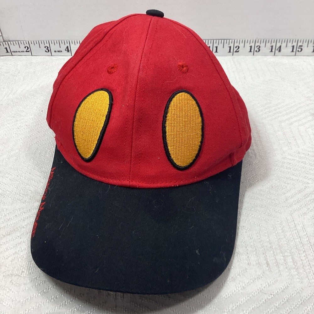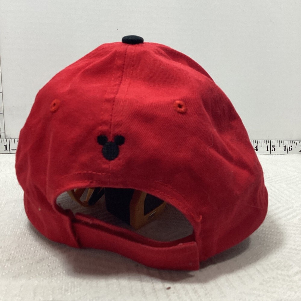 This vibrant red Mickey Mouse hat with glasses is a must-have for every Disney fan. It features the iconic character in a playful pose and comes straight from the Disney parks. The adjustable back ensures a perfect fit for all head sizes. The hat is part of the Disneyana collectibles and falls under the Apparel & Accessories category. It is made by the Disney brand and is perfect for anyone who loves Mickey Mouse. Whether you're a collector or just looking for a fun accessory, this hat is sure to make a statement.