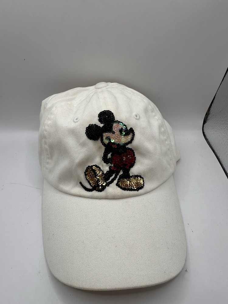 Show off your love for all things Disney with this Mickey Mouse baseball cap. The adjustable white cap features the iconic Walt Disney World logo and is perfect for any Disneyland Resort fan. Made in Taiwan, this contemporary hat is suitable for adults of any gender and is a must-have for any Disney fan's collection. The cap is adorned with the classic Mickey Mouse story and theme, making it a great addition to any outfit. Don't miss out on this opportunity to show your love for Disney with this stylish and comfortable cap.