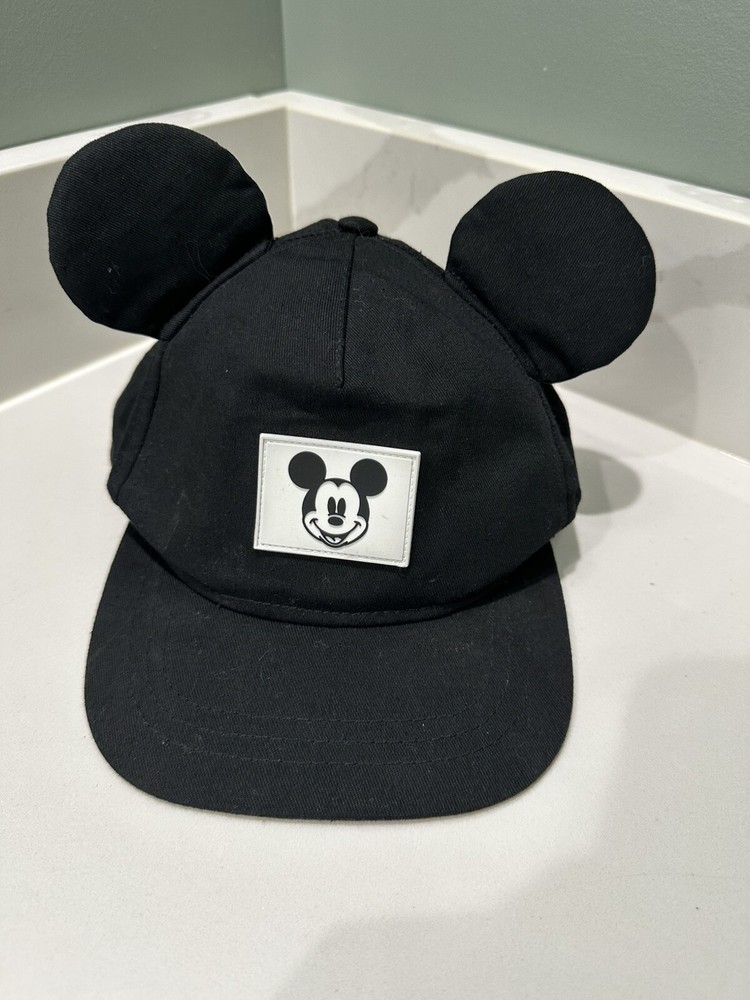 Excellent preowned condition This is a Mickey Mouse black baseball cap hat from Disney, featuring a white square design. It is suitable for children and adults of any gender, with an adjustable size. The cap is part of the Disney franchise and is adorned with Mickey Mouse ears, making it a fun and classic accessory for fans of Disney and Mickey Mouse.