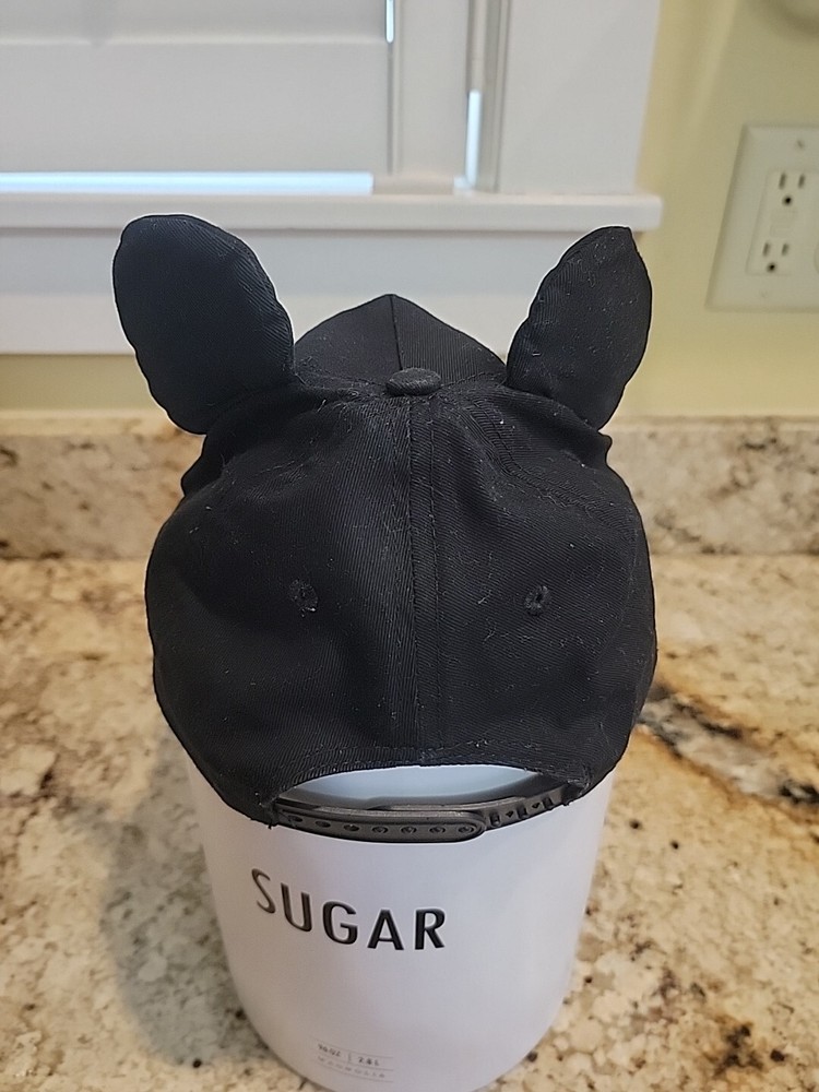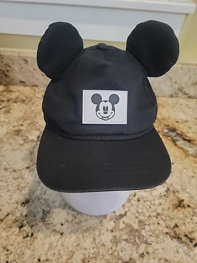 Mickey Mouse Ears Black Baseball Cap Hat Disney Junior Youth White Square. Excellent Condition.