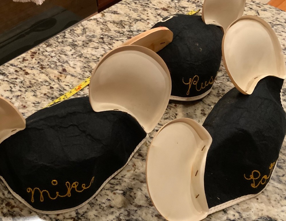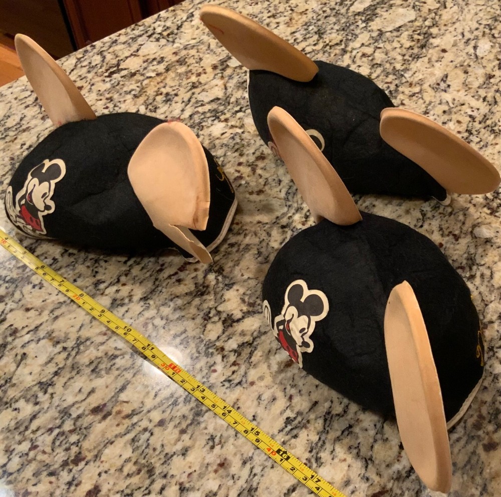 You are bidding on a Mickey Mouse Ears Walt Disney World Disneyland Felt Hat / Cap Vintage Lot of 3 . The hats/caps are personalized. They are written in cursive and appear to be Russ, Mike, and Pat. I don’t know if these are child size but I assume they are a one size fits all. Shipping will be 7.95. I only ship to the continental United States.