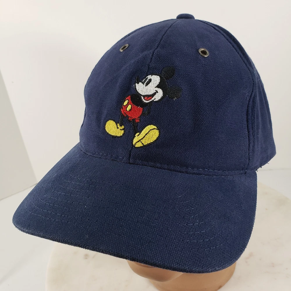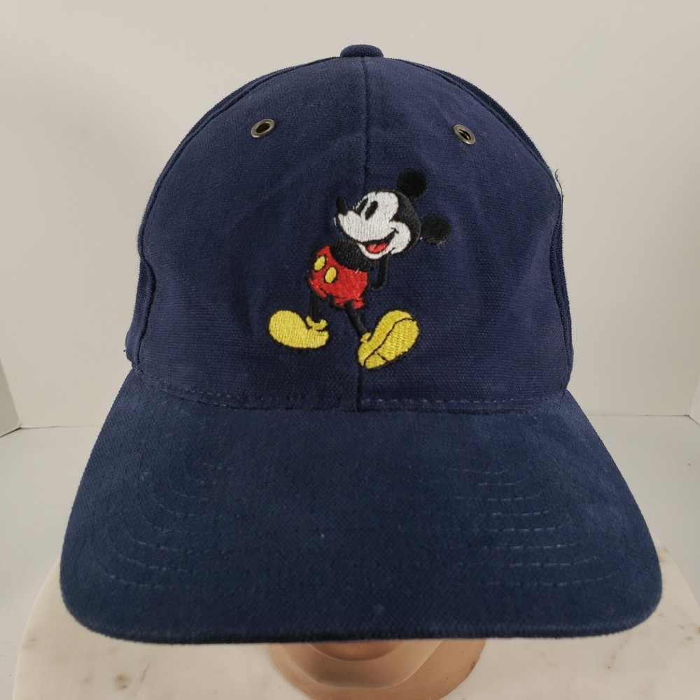 Mickey Mouse Hat Walt Disney World Cap Blue Cotton Vtg Strap Back Adjustable Good used condition with little wear from use. Comes as shown in the photos.