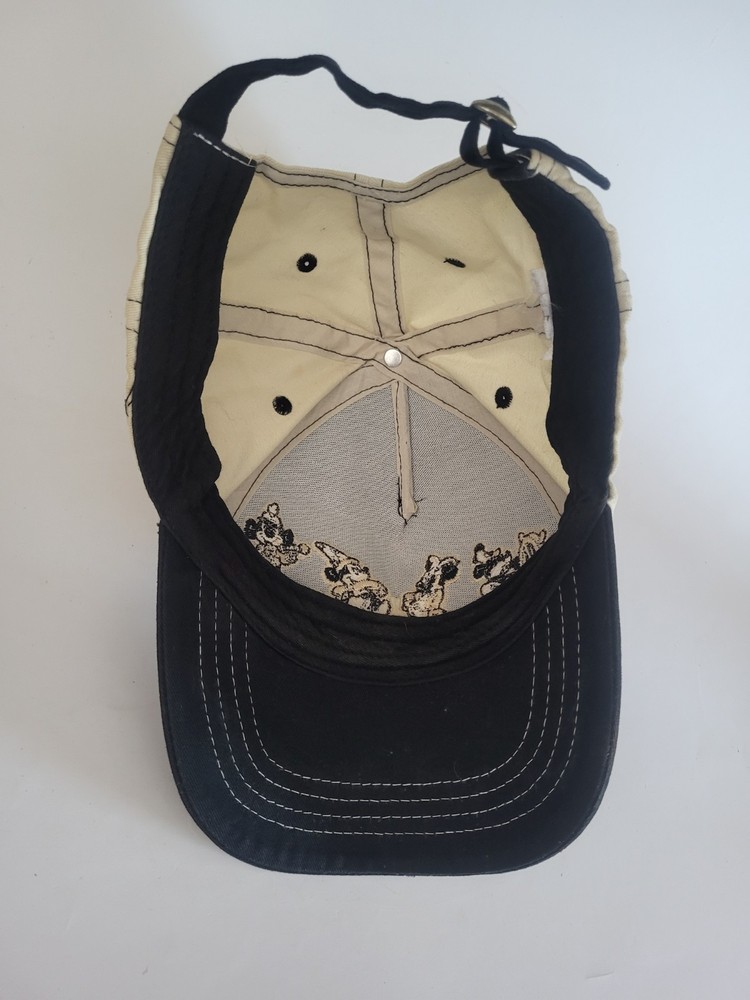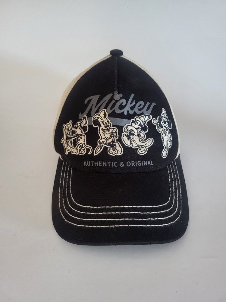 This black baseball cap features Mickey Mouse through the years and is adjustable for adults. It is a Disney Parks item suitable for both men and women, part of the Disney franchise....
