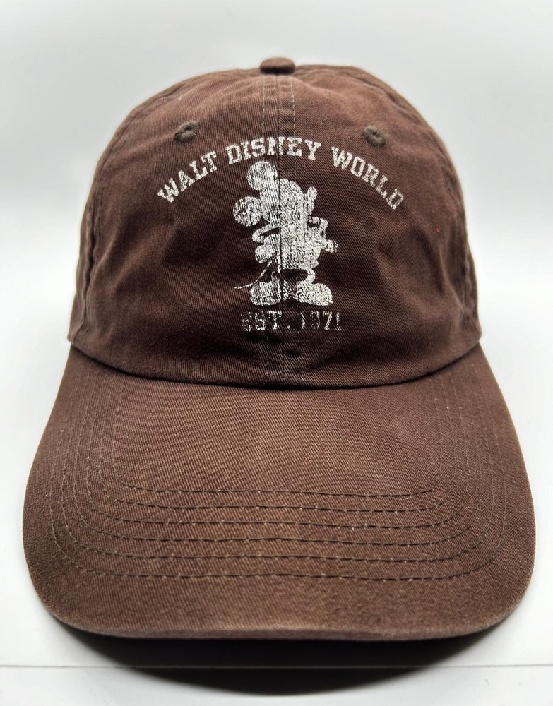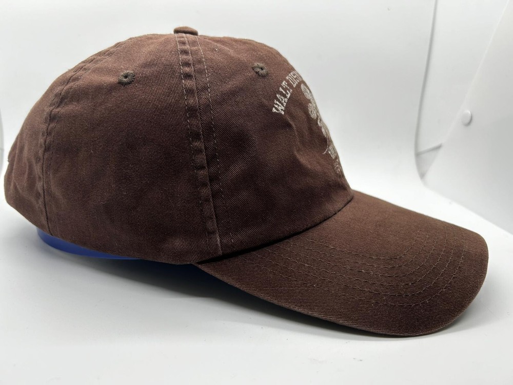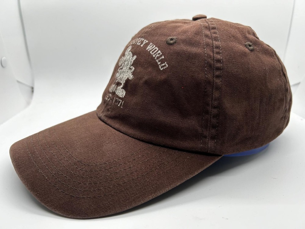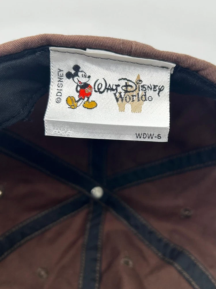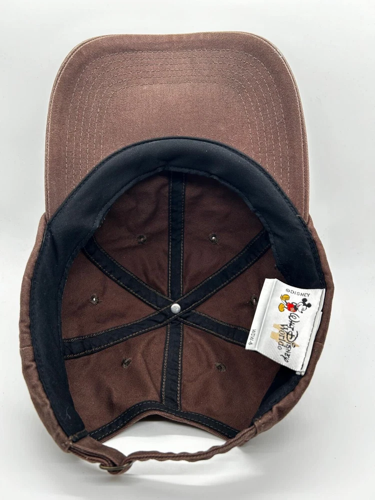Show off your love for all things Disney with this vintage Mickey Mouse cap. The brown cotton hat features an adjustable strap, making it suitable for adults of all sizes. Perfect for any Disney fan, this hat is adorned with the iconic Mickey Mouse logo and is suitable for both men and women. Represent your favorite franchise with pride and add this piece to your Disneyana collection today.