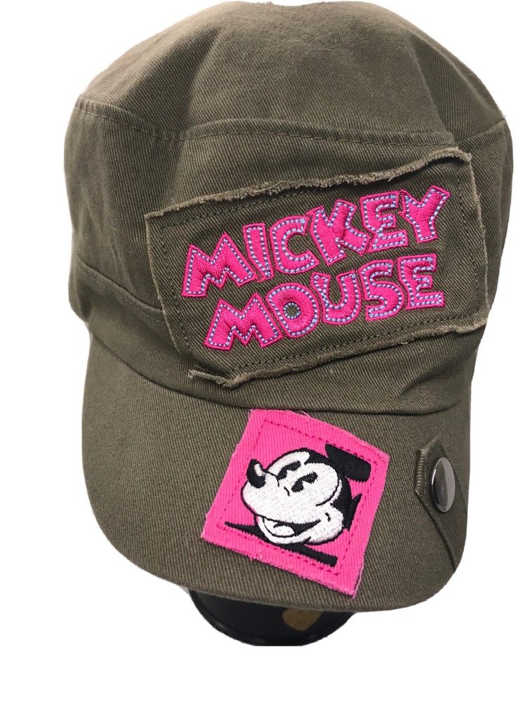 Nice women’s one size Disney Parks Authentic Original Army Hat distressed embroidered Mickey Mouse Patch Green