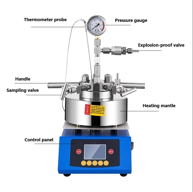 eBay Characteristics and Uses: Stainless Steel high pressure reactor autoclave is suitable for flammable, explosive, high toxic, precious media and chemical media of strong penetration to stir. It is the best no-leak response for petroleum, chemical, organic synthesis, polymer, food and other process to vulcanize, fluorate, oxidize. The main features of the device are static sealing structure, which can completely solve the leakage problem of stirring,keep the entire medium and mixing parts completely sealed.Therefore, it is more suitable for a variety of flammable, explosive, highly toxic, valuable media and other chemical media with strong penetration.The product integrates stirring,heating and high-pressure reaction. It is a combination of Mechanical stirrer and stainless steel high-pressure reactor for reducing the cost of research unit. The equipment is more versatile and reduce costs for user and widely used in colleges and universities, environmental protection, biochemistry, medical treatment, scientific research and other fields. Features of the product: 1.Small size,simple and reliable structure. 2.LCD displayed srirring speed and temperature,parameter button adjustment,more convenient, more accurate value and more beautiful appearance. 3.It is equipped with a mini DC motor, pressure gauge, explosion-proof device, intake valve, sampling valve and temperature probe, which can easily realize the micro-reaction test. 4.The reaction kettle and heater can be quickly separated,the kettle can be quickly cooled. 5.Temperature and rotational spee d are displayed, convenient, quick and controllable Use and precautions: 1.The main sealing port of the autoclave adopts the line contact of the gasket or the tapered surface and the circular arc surface. By tightening the main nut, they are pressed against each other to achieve a good sealing effect. When tightening the nut, the angle must be symmetrical several times and tightened gradually. The force should be even. Do not allow the lid to tilt to one side to achieve a good sealing effect. Do not exceed the specified tightening torque 40~120nm range when tightening the main nut to prevent the sealing surface from being crushed or overloaded. The sealing surface should be specially taken care of. Wipe the upper and lower sealing surfaces with a softer paper or cloth before each installation. Pay special attention not to touch the sealing surface of the kettle body and the lid of the kettle. If reasona bly operated, it can be used more than 10,000 times. Once the sealing surface is broken, it needs to be reworked to achieve good sealing performance. Lift the lid up and down slowly when removing the lid. It is forbidden to collide with the sealing surfaces between the kettle body and the kettle lid. If the seal type is gasketed (tetrafluoro, aluminum pad, copper, asbestos pad, etc.), a good sealing effect can be achieved by tightening the main nut. 2.The temperature of external heating during work is recommended not to exceed 350℃, the heating rate is ≤ 5℃/min, can be controlled by PID temperature control system, the cooling rate is ≤ 5℃/min. Safety pressure is 22 MPa. 3.The screw is symmetrically pressed after feeding.When the reaction is completed, the kettle body is naturally cooled to room temperature and then open the kettle cover. 4.Do not fill more than 80% in the kettle. Reactor Type High Pressure/Autoclave Reactor Intended Use/Discipline Biological Laboratory, Medical Laboratory, Microbiological Laboratory, Physical Laboratory Country/Region of Manufacture China Certification CE ISO Material SS304 Designed Pressure 0-22MPa Sealing Mode Static Sealing Structure Heating Type Magnetic heating mantle heating Volume 50ml-500ml Voltage 110V(220V optional) Design temperature 350℃ Rotation speed 1800(r/min) Heating Power 0.6/0.6/0.8/1.5(KW)